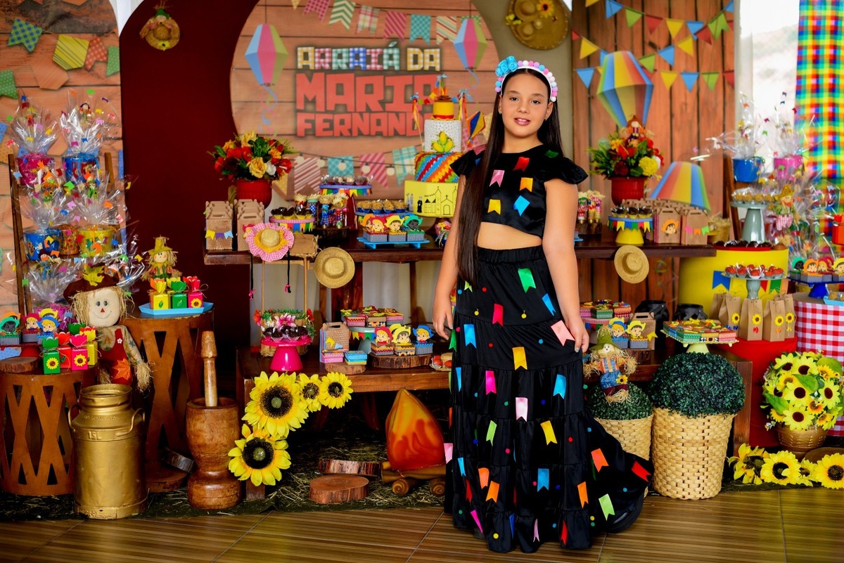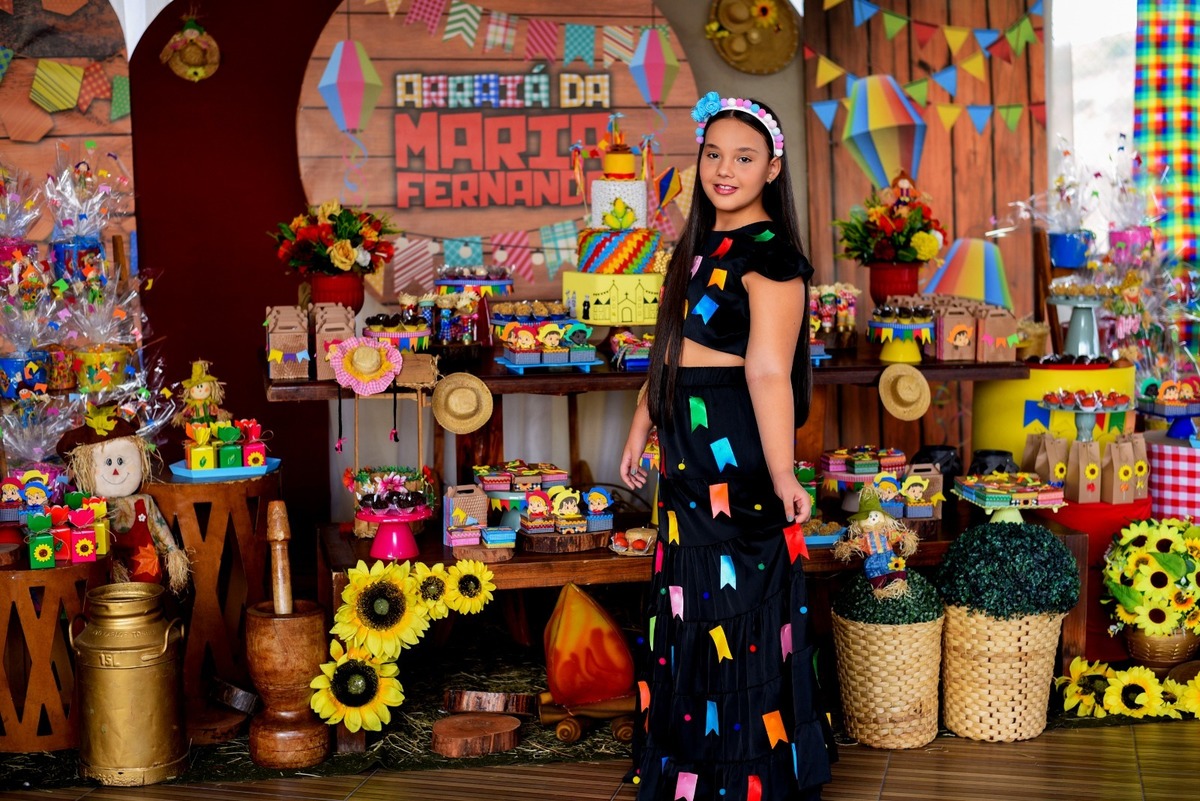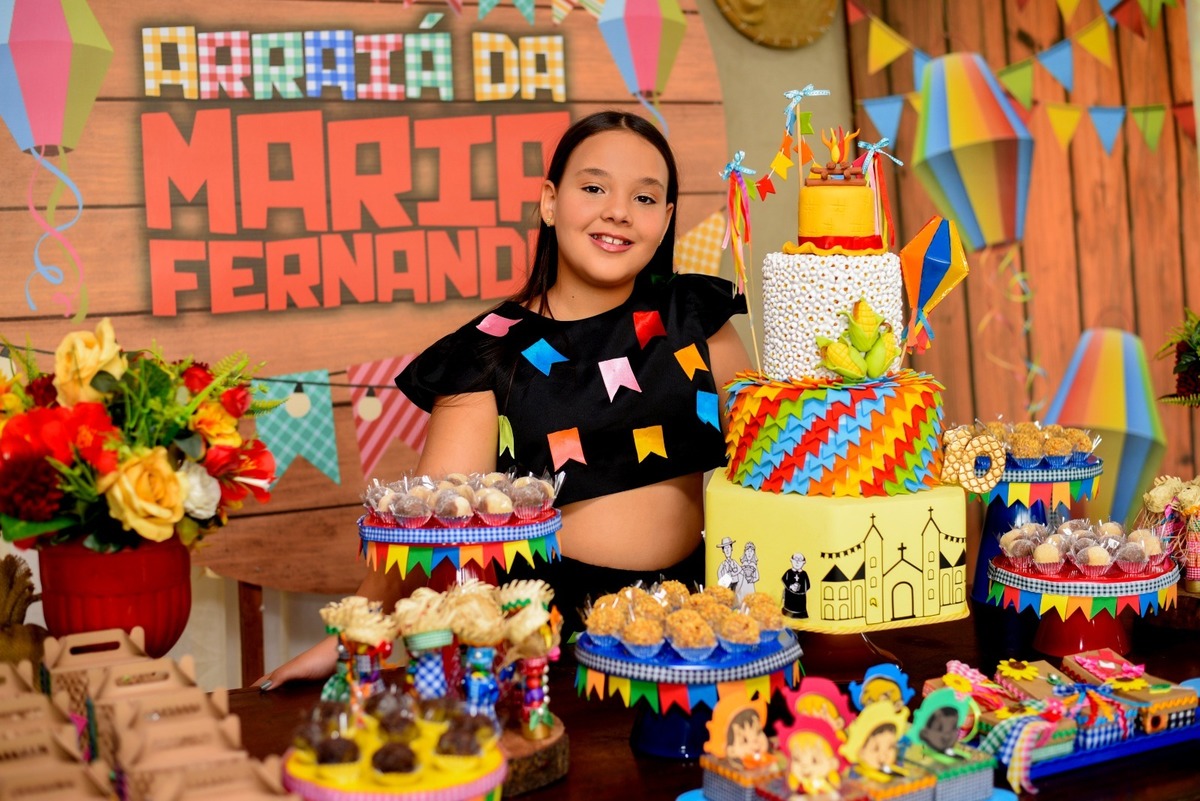 Um colorido e animado arraiá celebrou os dez anos da Maria Fernanda. Que estava radiante e feliz nesta festa linda!