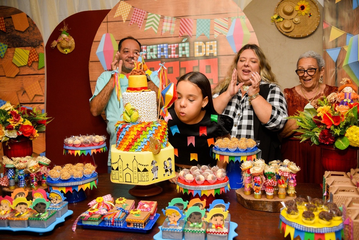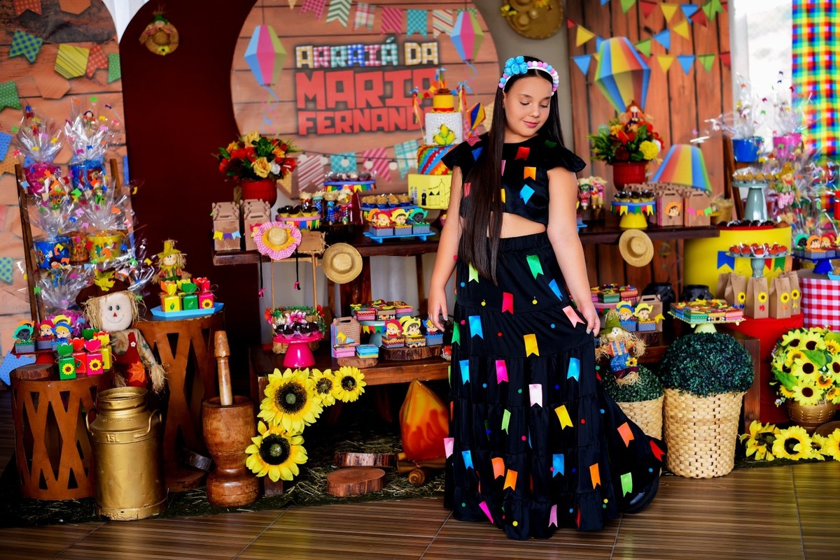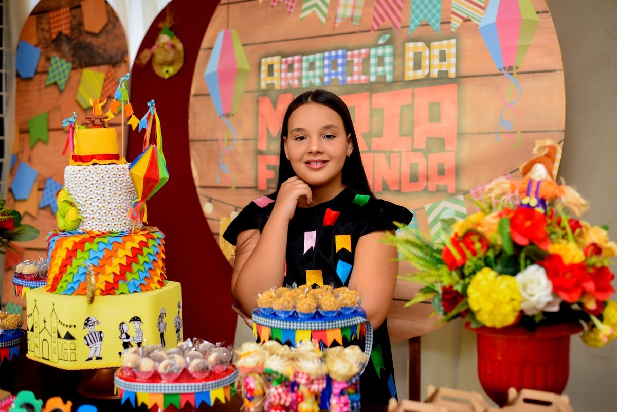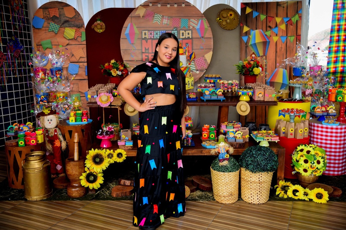 Um colorido e animado arraiá celebrou os dez anos da Maria Fernanda. Que estava radiante e feliz nesta festa linda!