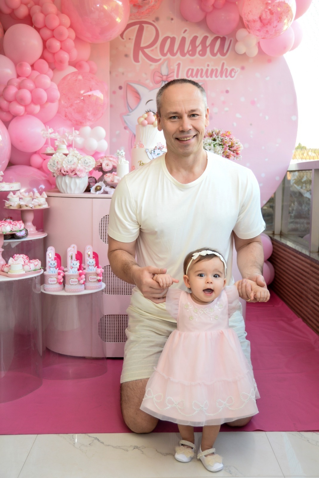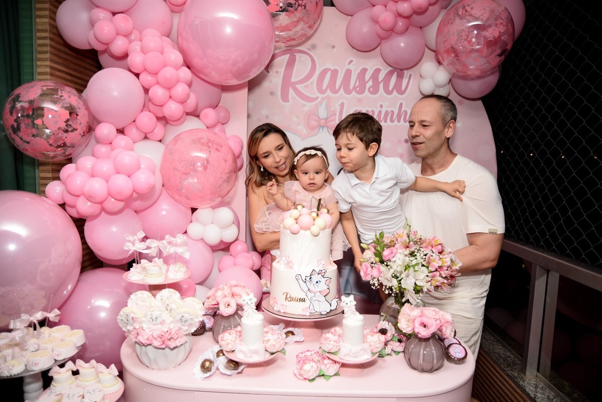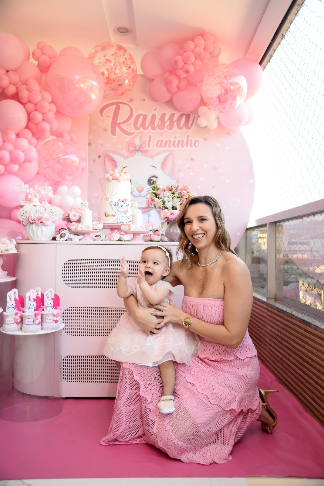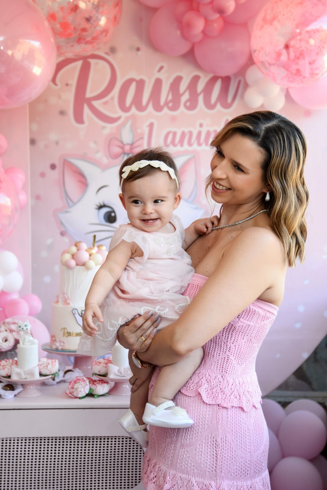 "Um ano de fofura e muitas aventuras! 🎀🐱 Celebrando o primeiro aninho da nossa pequena Raíssa, com a doçura e o charme da Gatinha Marie. Que venham muitos sorrisos e momentos especiais! 💖✨