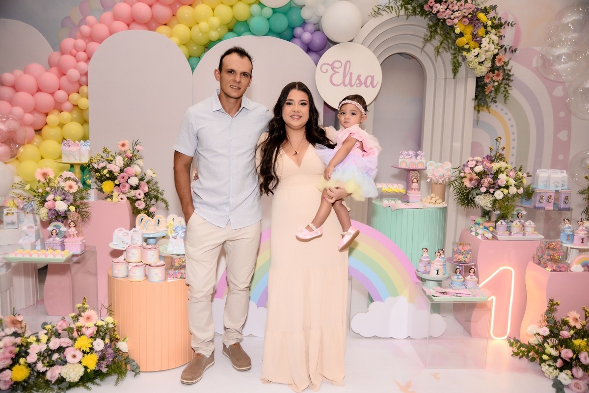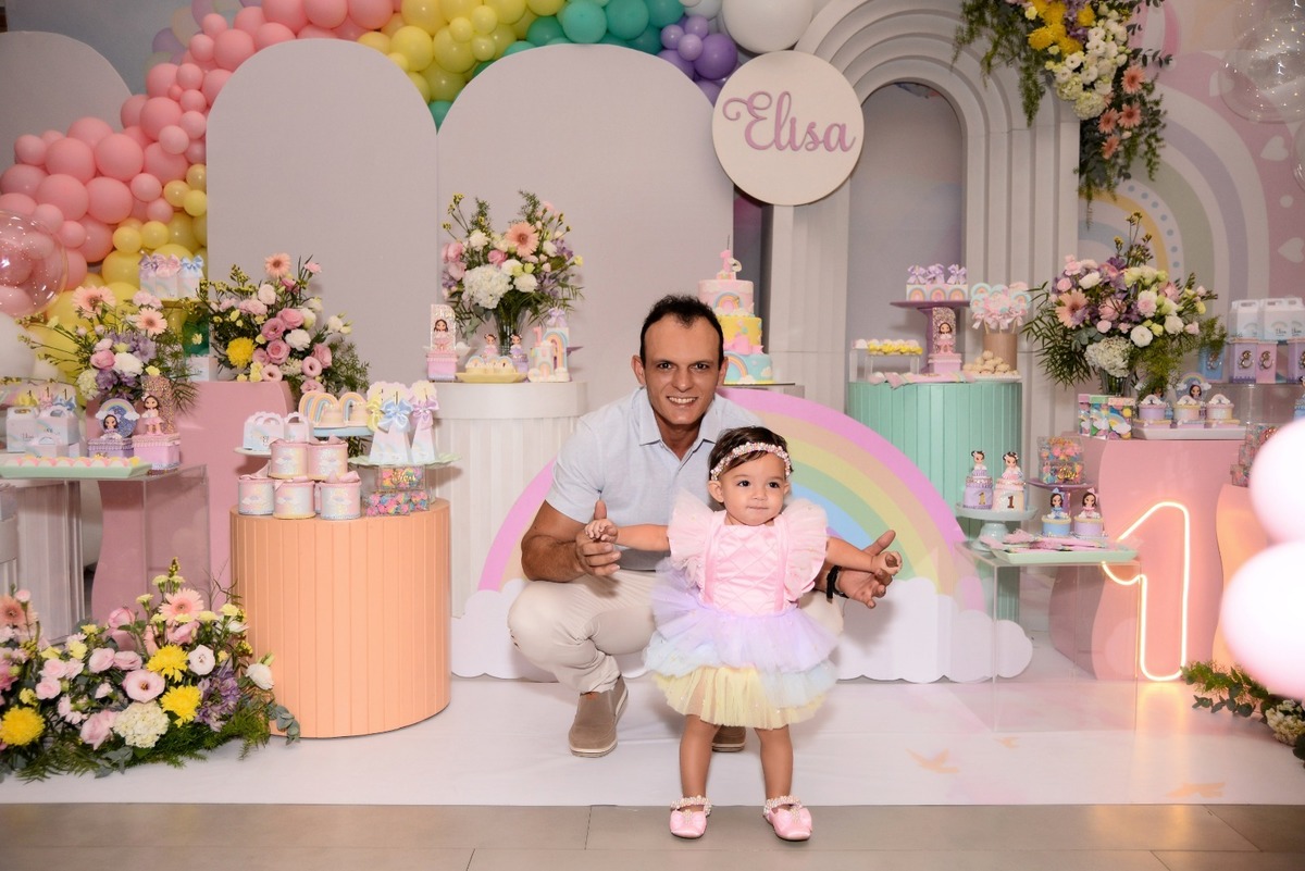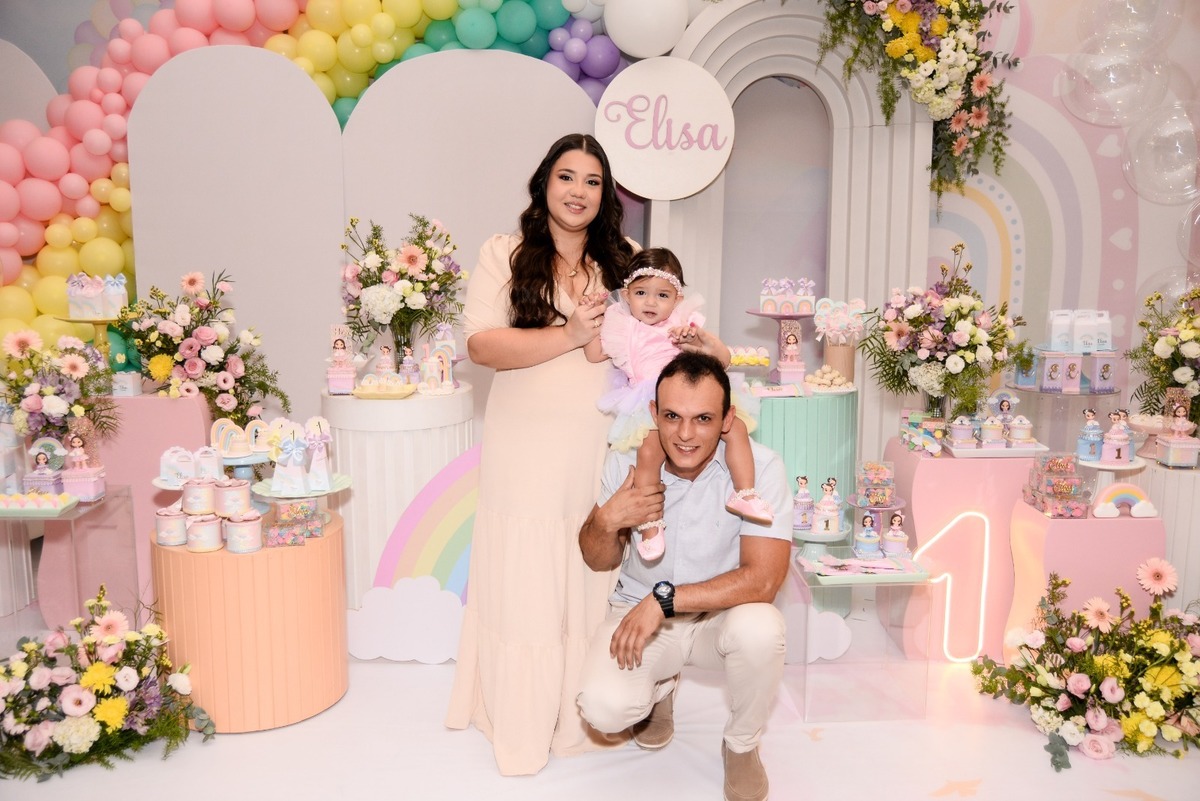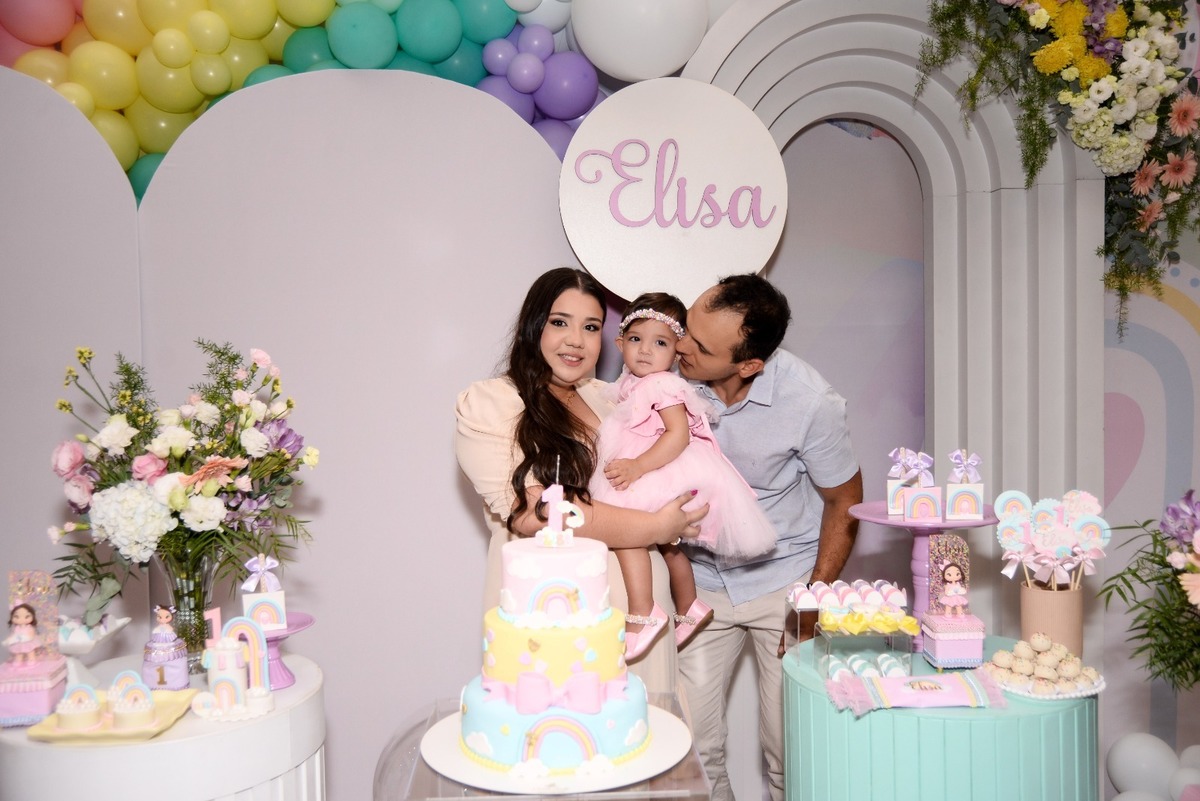 "Celebrando o primeiro aninho da Elisa, essa pequena que trouxe cores e alegria para nossas vidas! 🌈✨