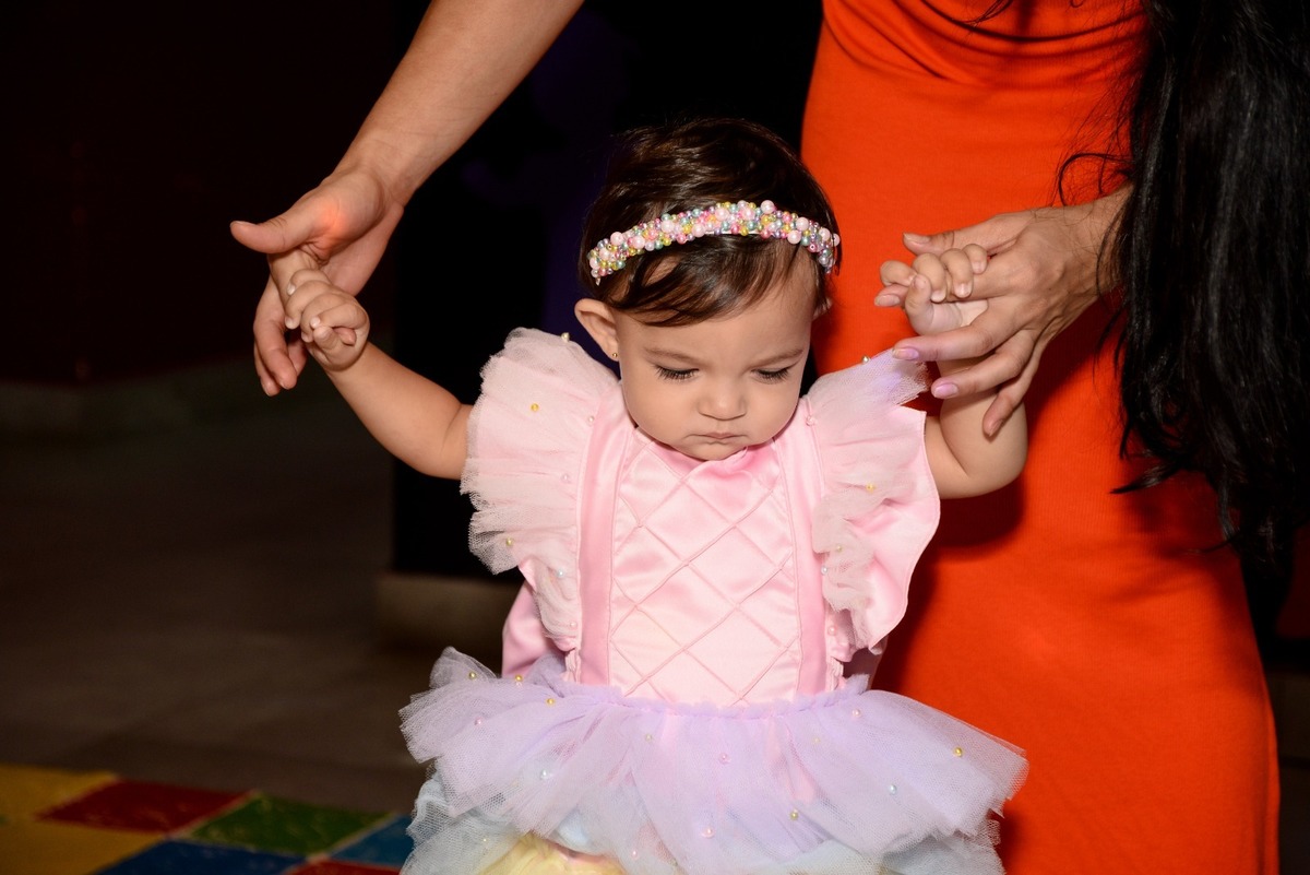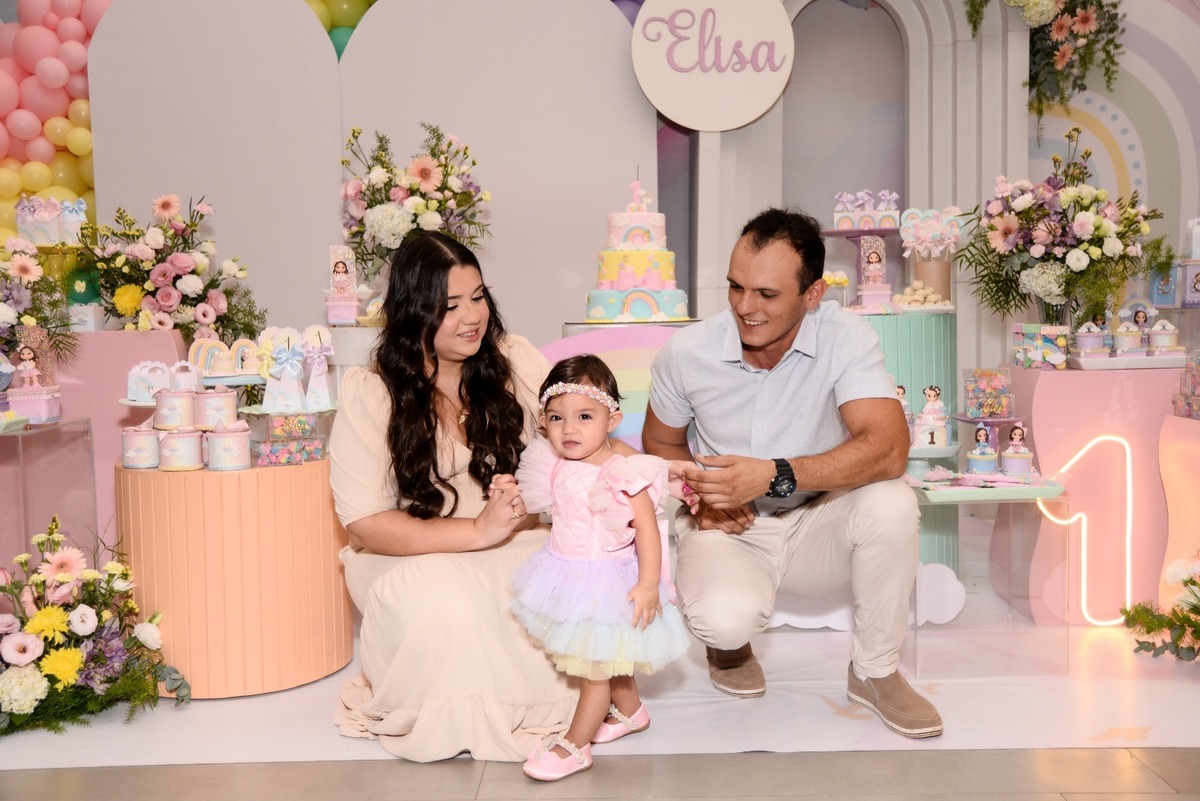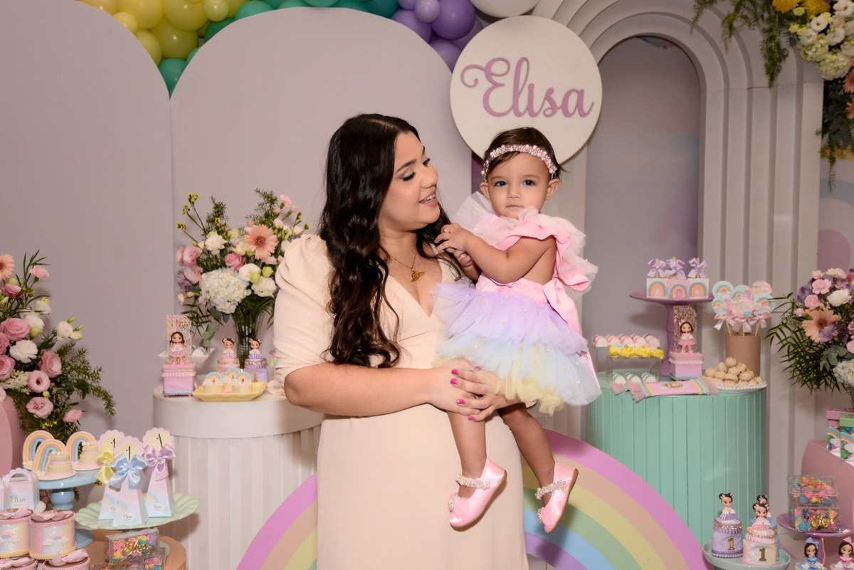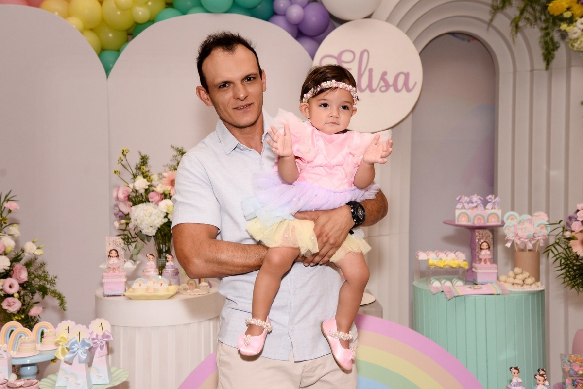 "Celebrando o primeiro aninho da Elisa, essa pequena que trouxe cores e alegria para nossas vidas! 🌈✨
