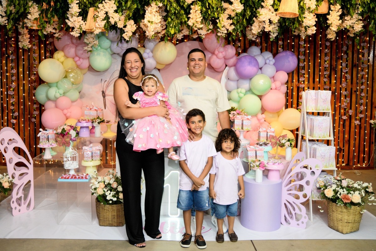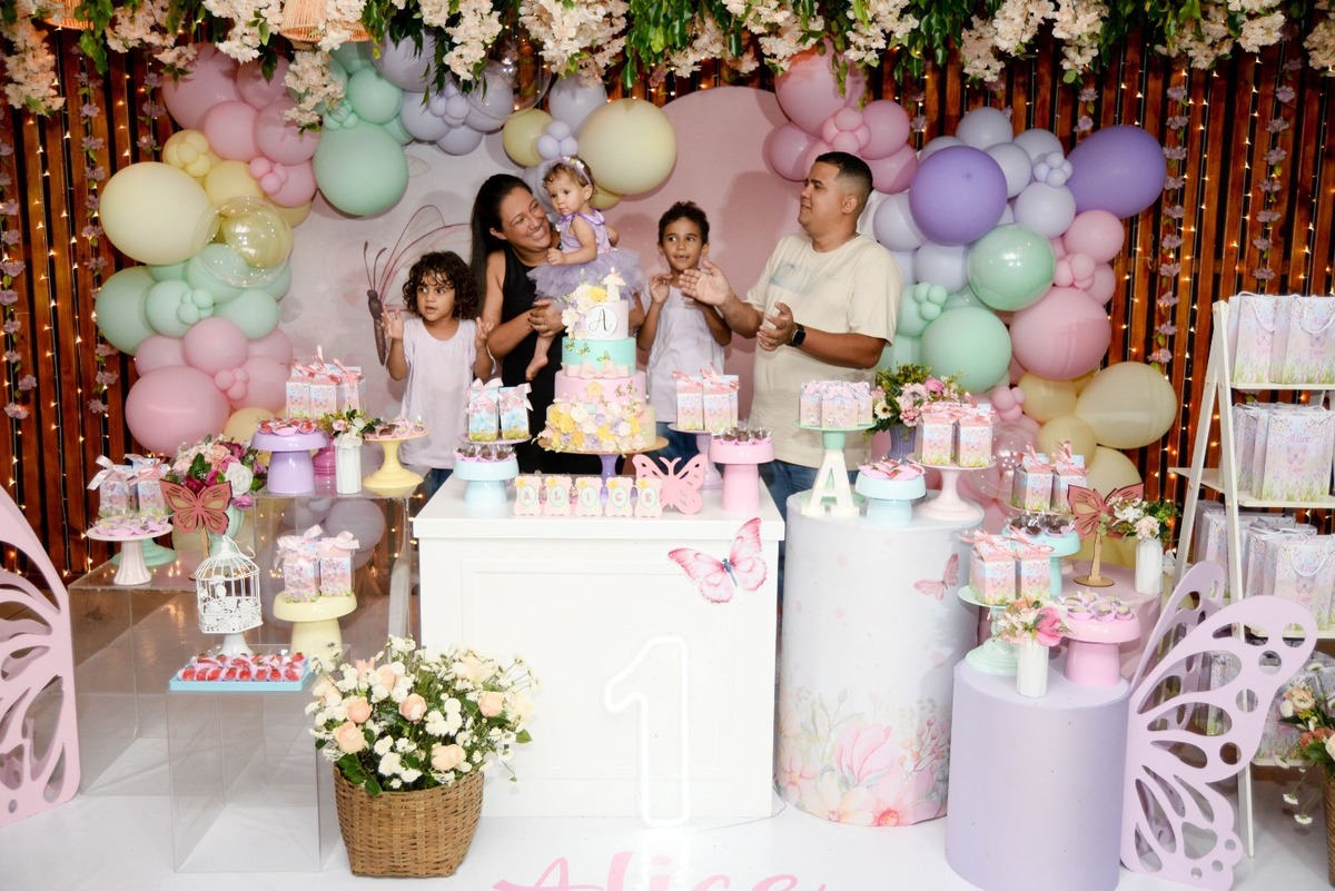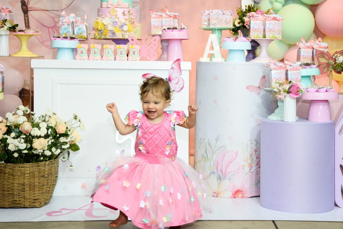 "Entre flores e borboletas, Alice celebrou seu primeiro aninho com muita doçura e encanto. Um verdadeiro jardim de alegria e amor!"