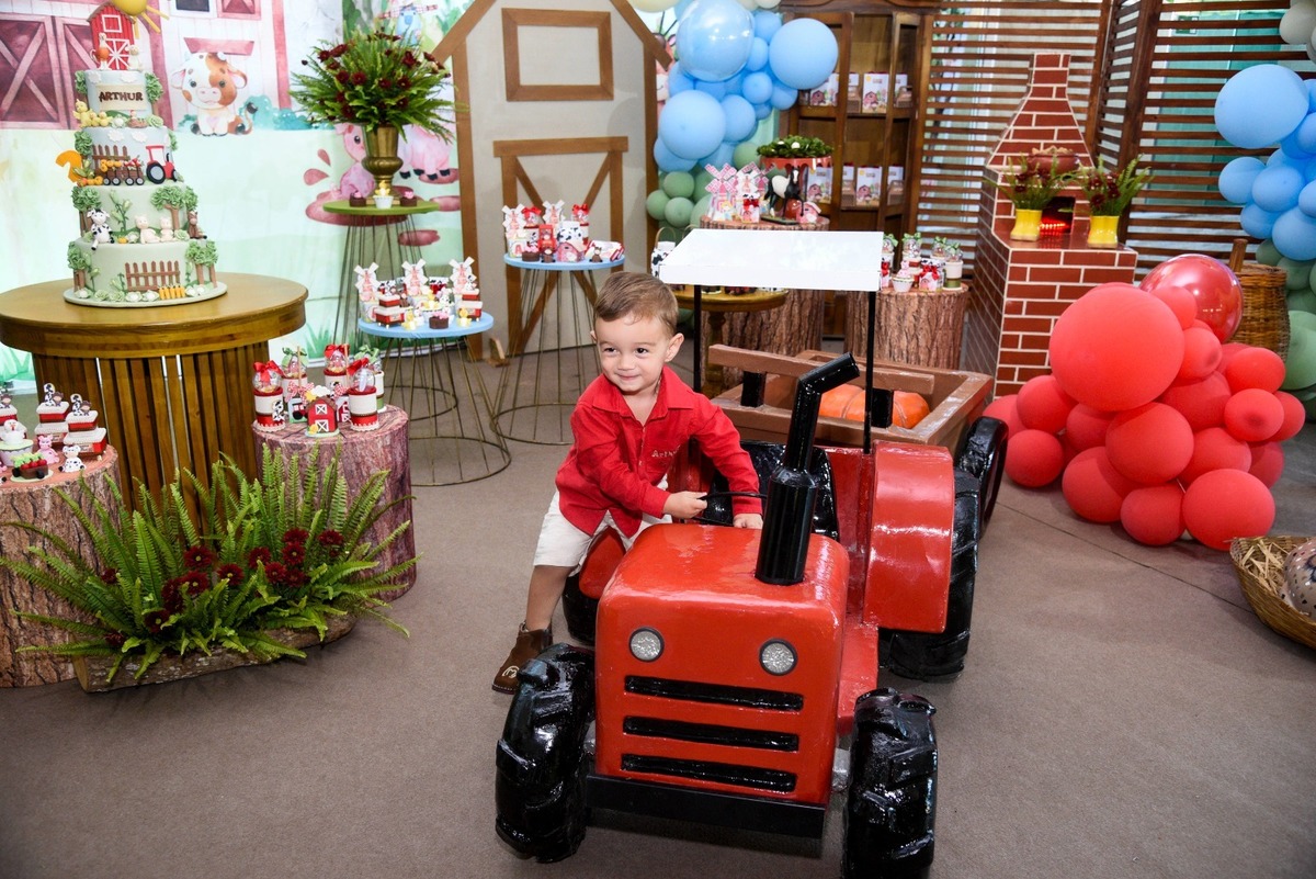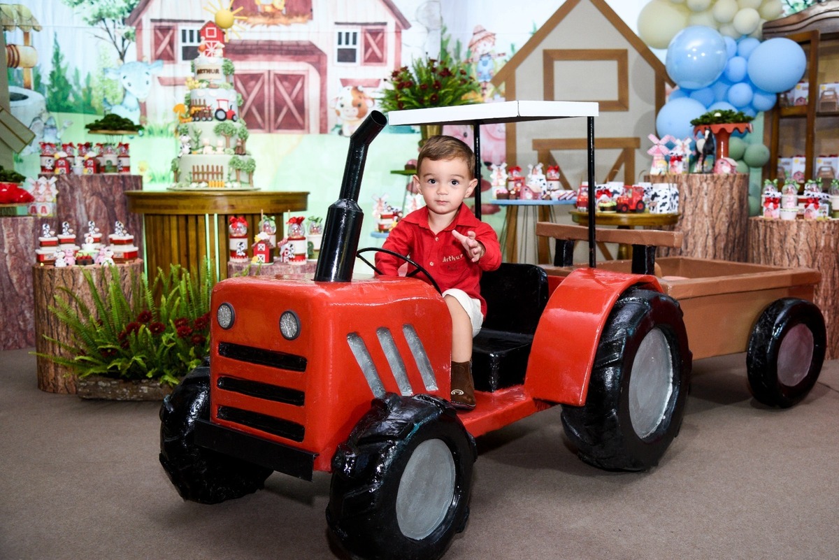 "Arthur completando 2 anos com muita alegria no clima da fazendinha! Muita diversão, animais e sorrisos para celebrar esse momento especial!"