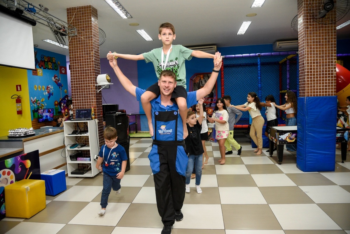 "Gabriel chegou ao nível 9 com muita aventura, blocos de diversão e corações cheios de alegria! Que essa nova fase seja épica!