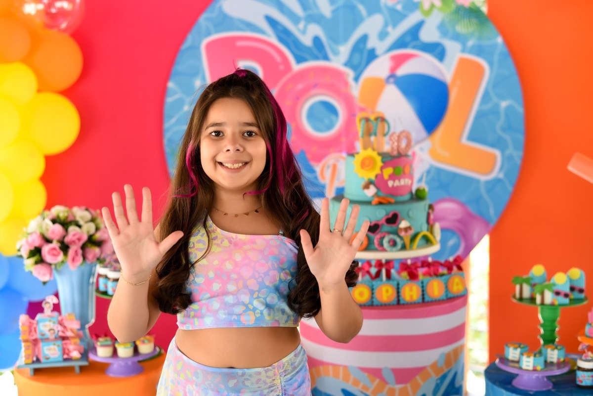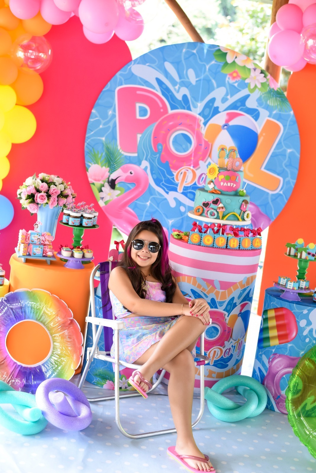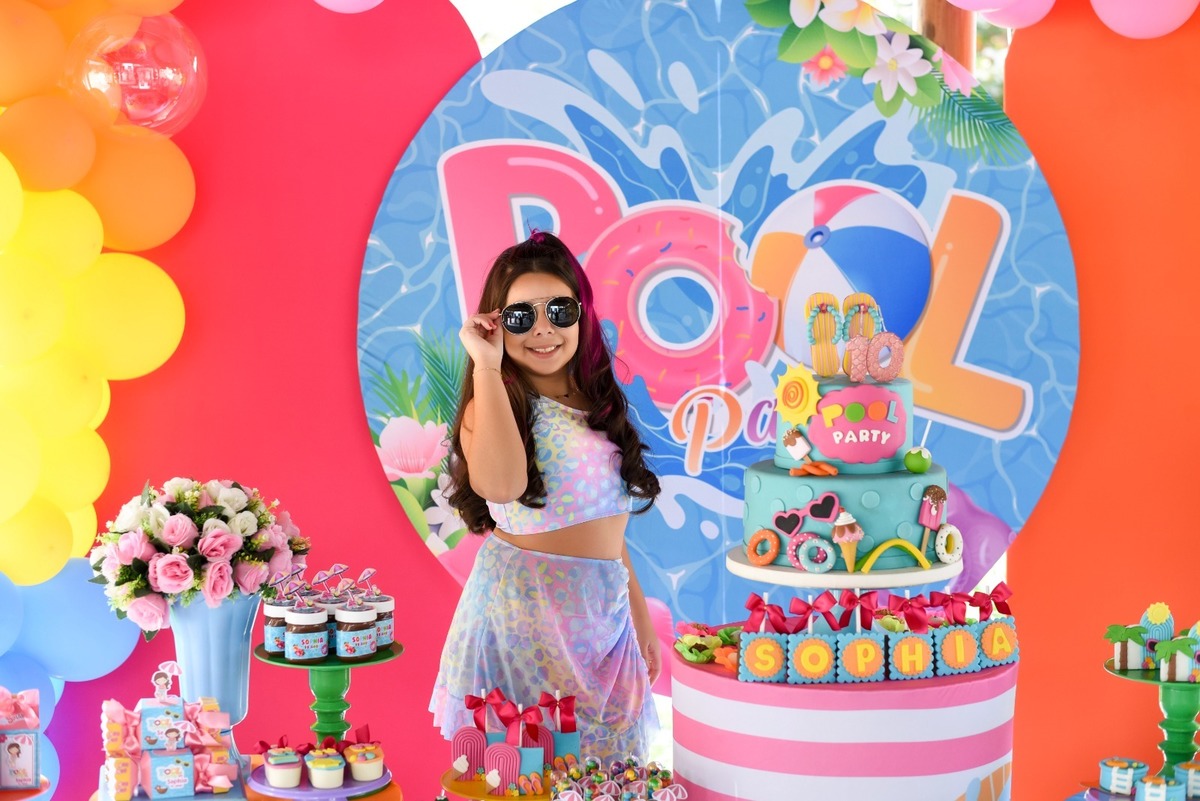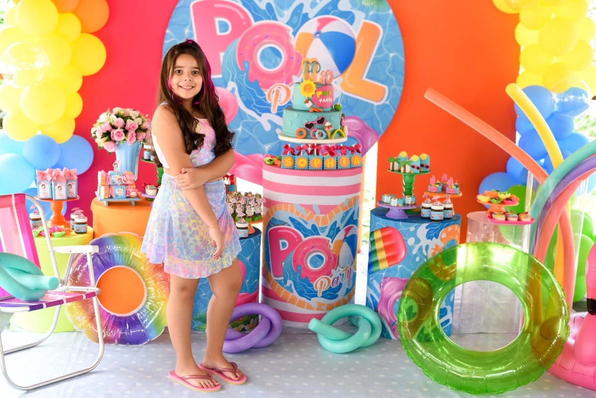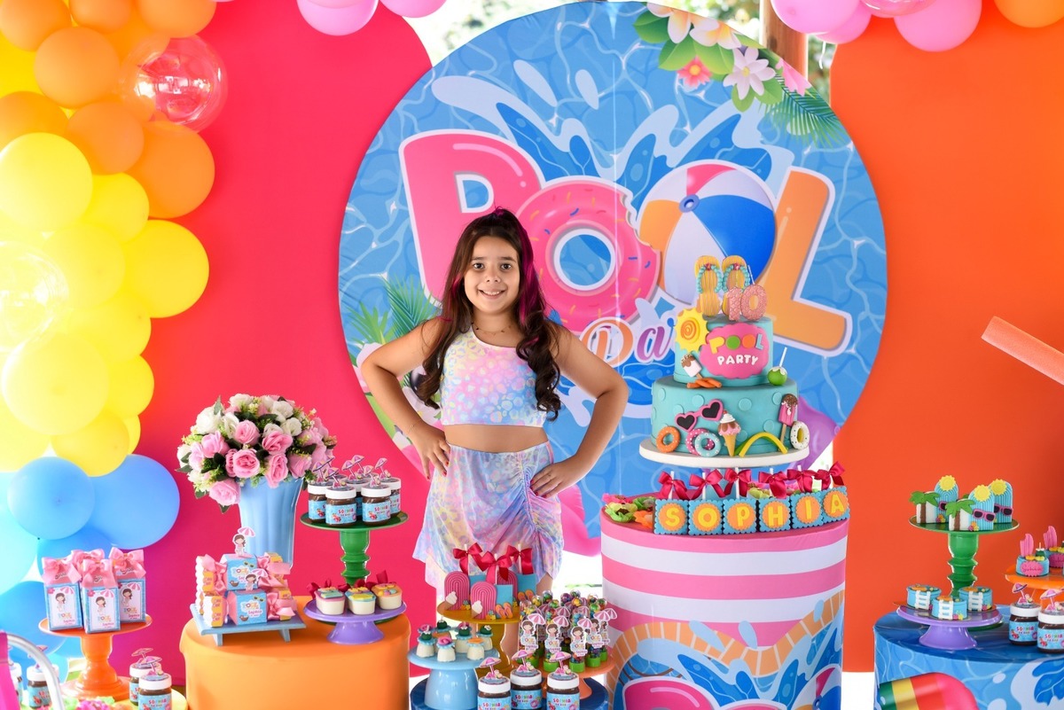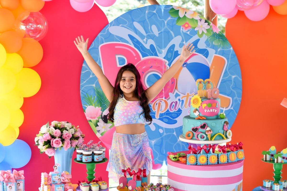 “Sophia completando 10 anos com muita diversão, cores e alegria em uma festa Party Pool cheia de boas energias e momentos especiais.”