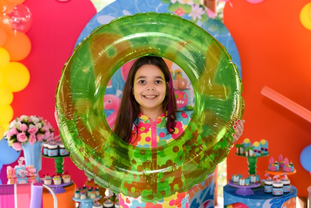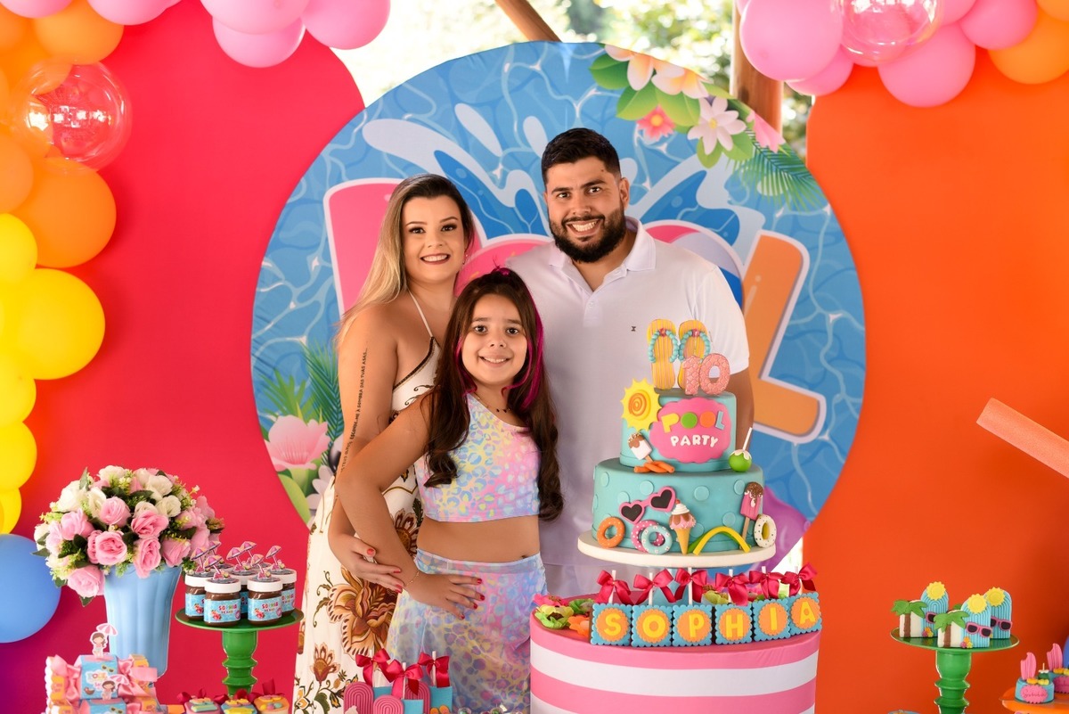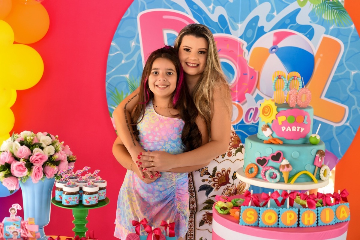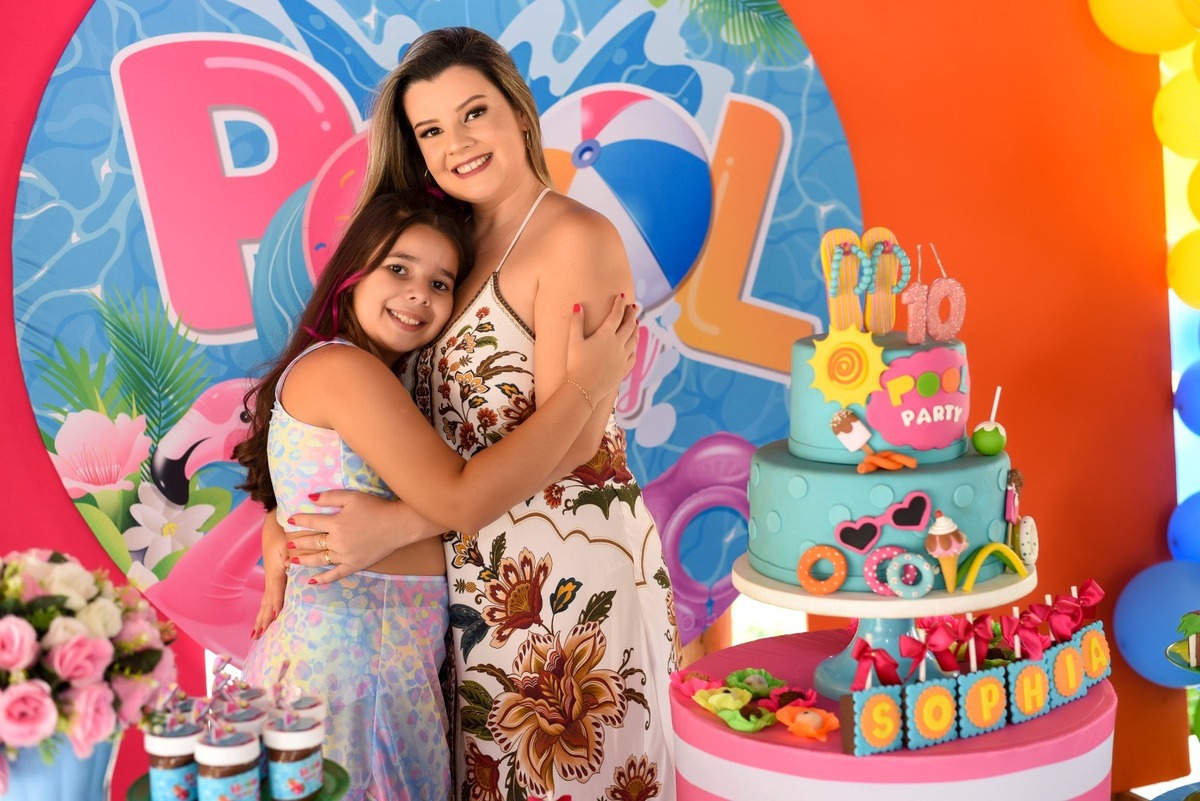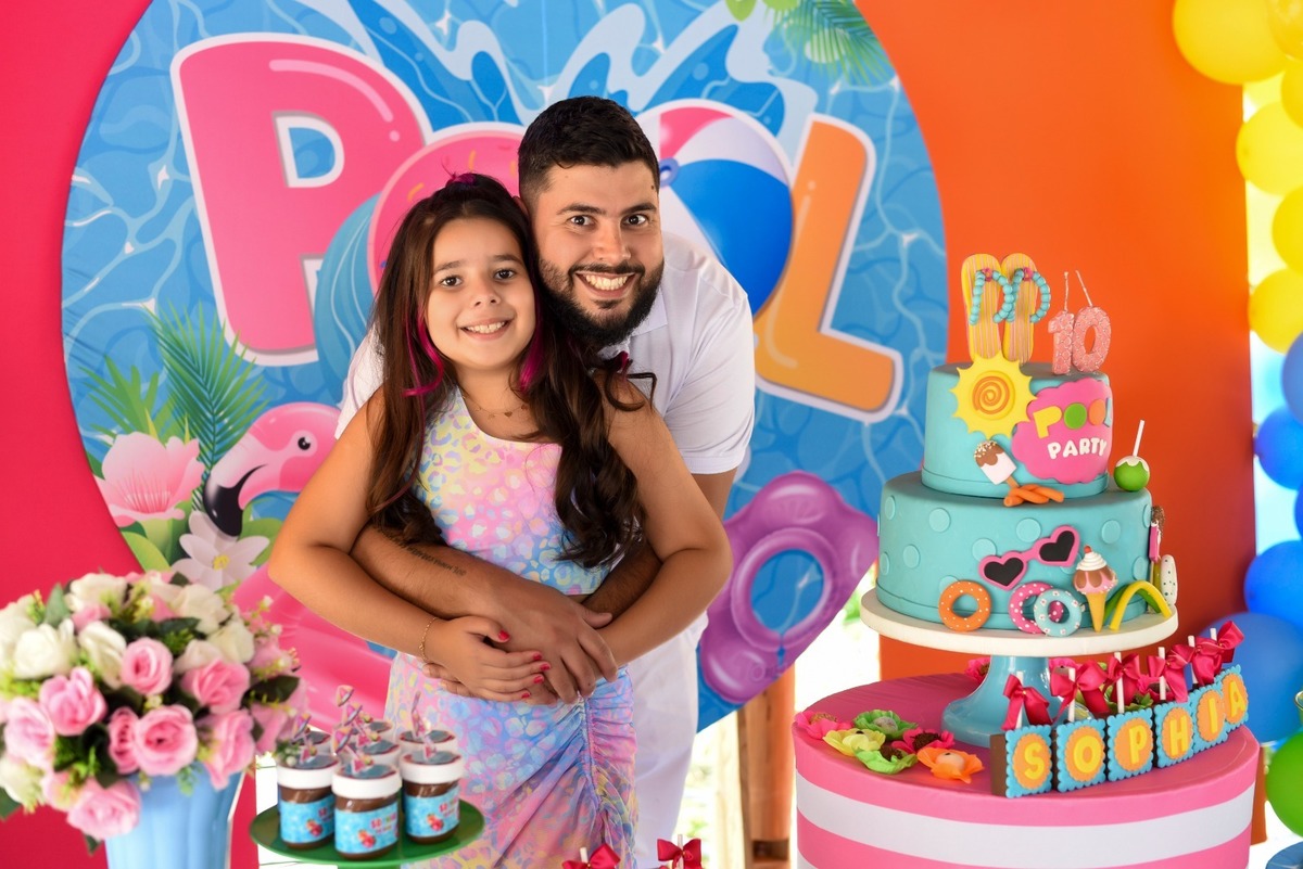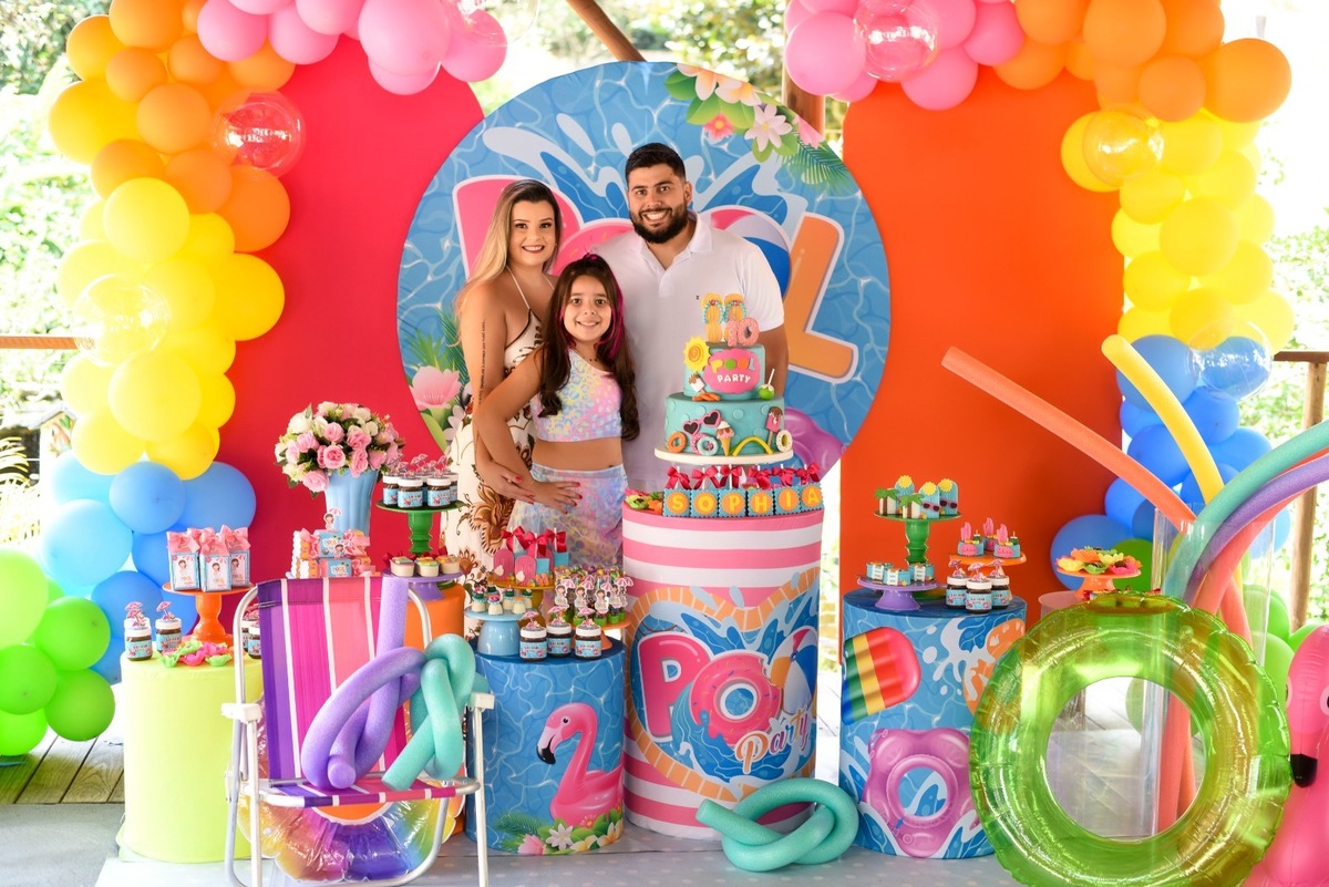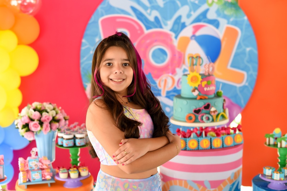 “Sophia completando 10 anos com muita diversão, cores e alegria em uma festa Party Pool cheia de boas energias e momentos especiais.”