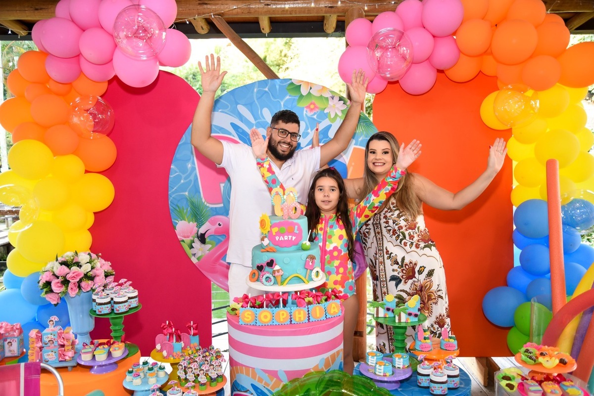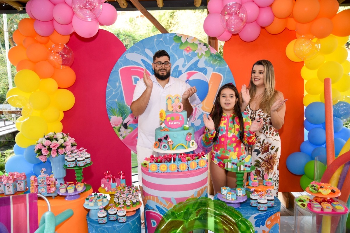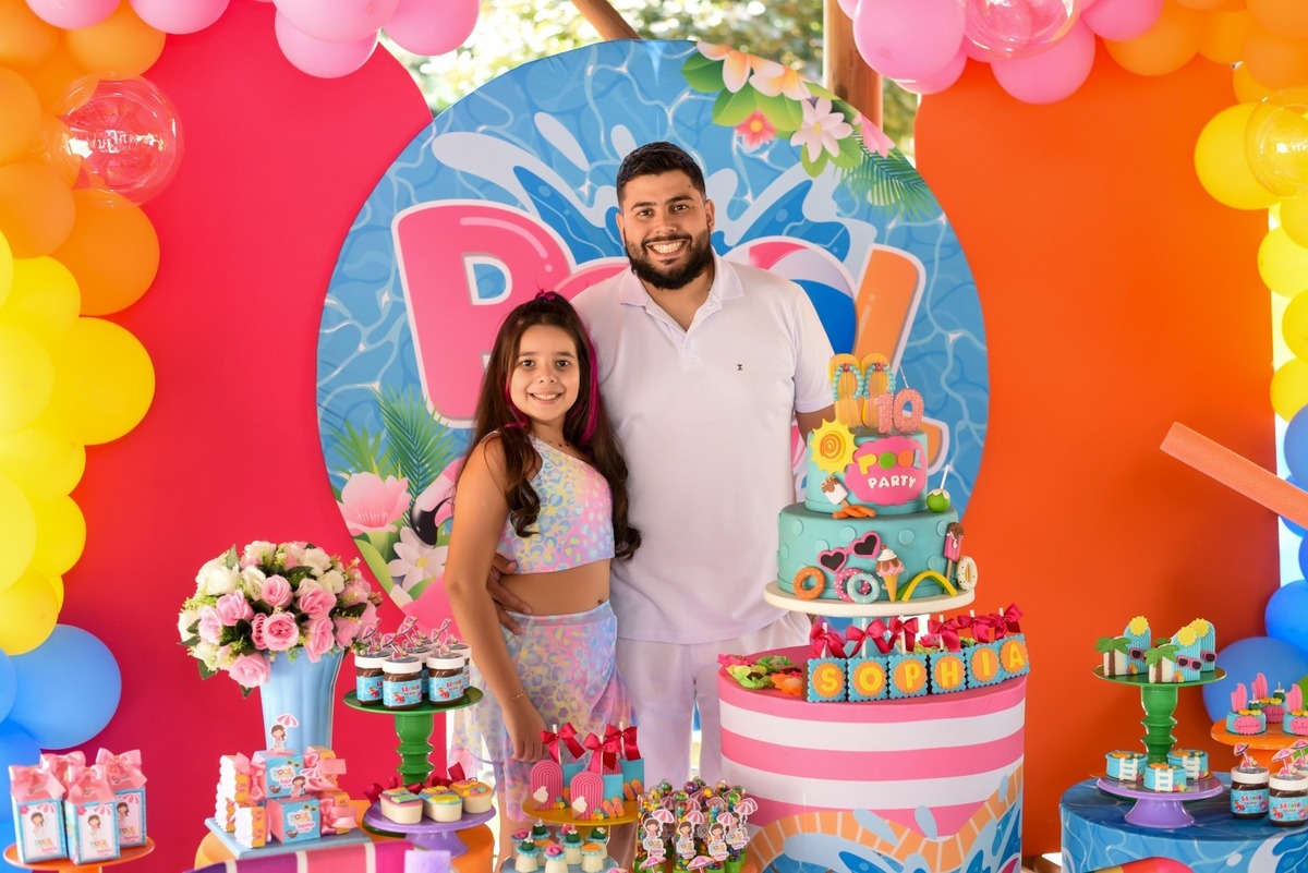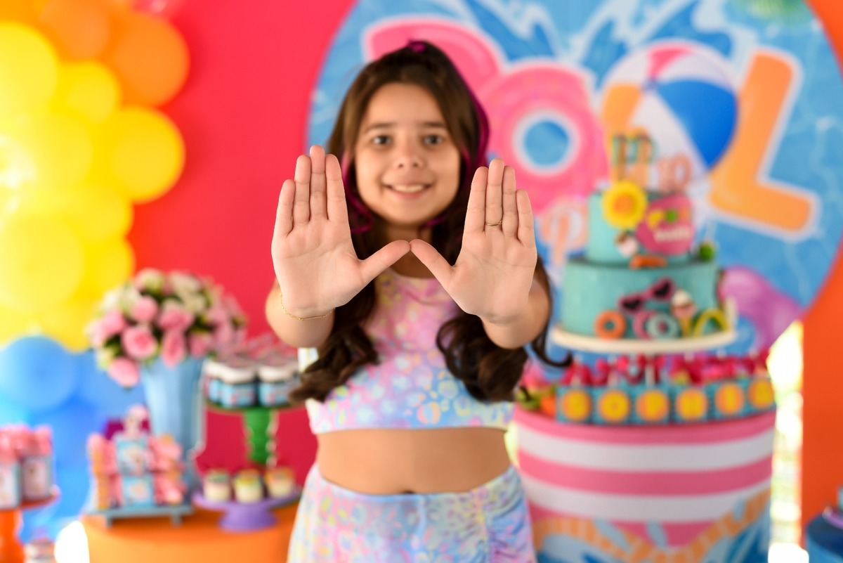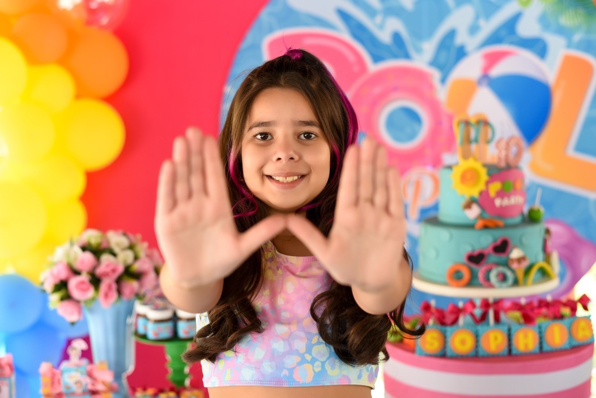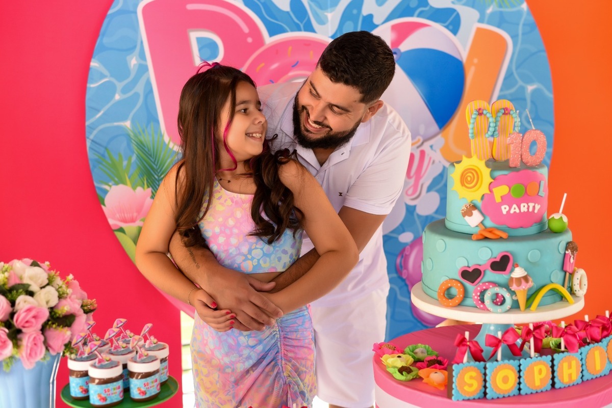 “Sophia completando 10 anos com muita diversão, cores e alegria em uma festa Party Pool cheia de boas energias e momentos especiais.”