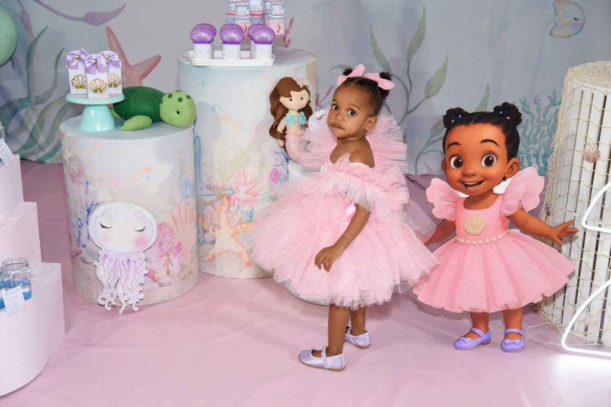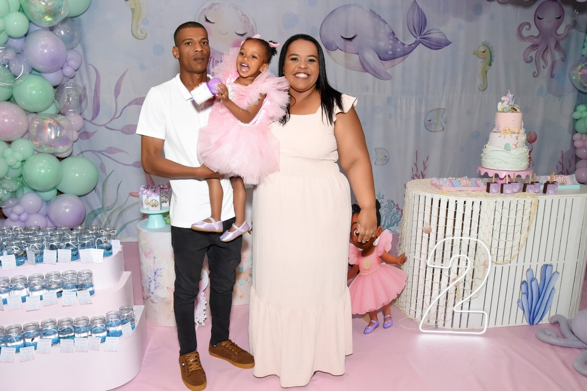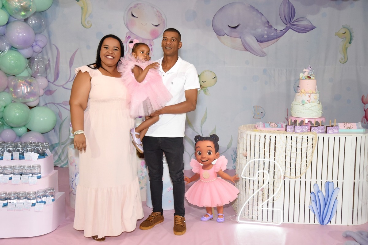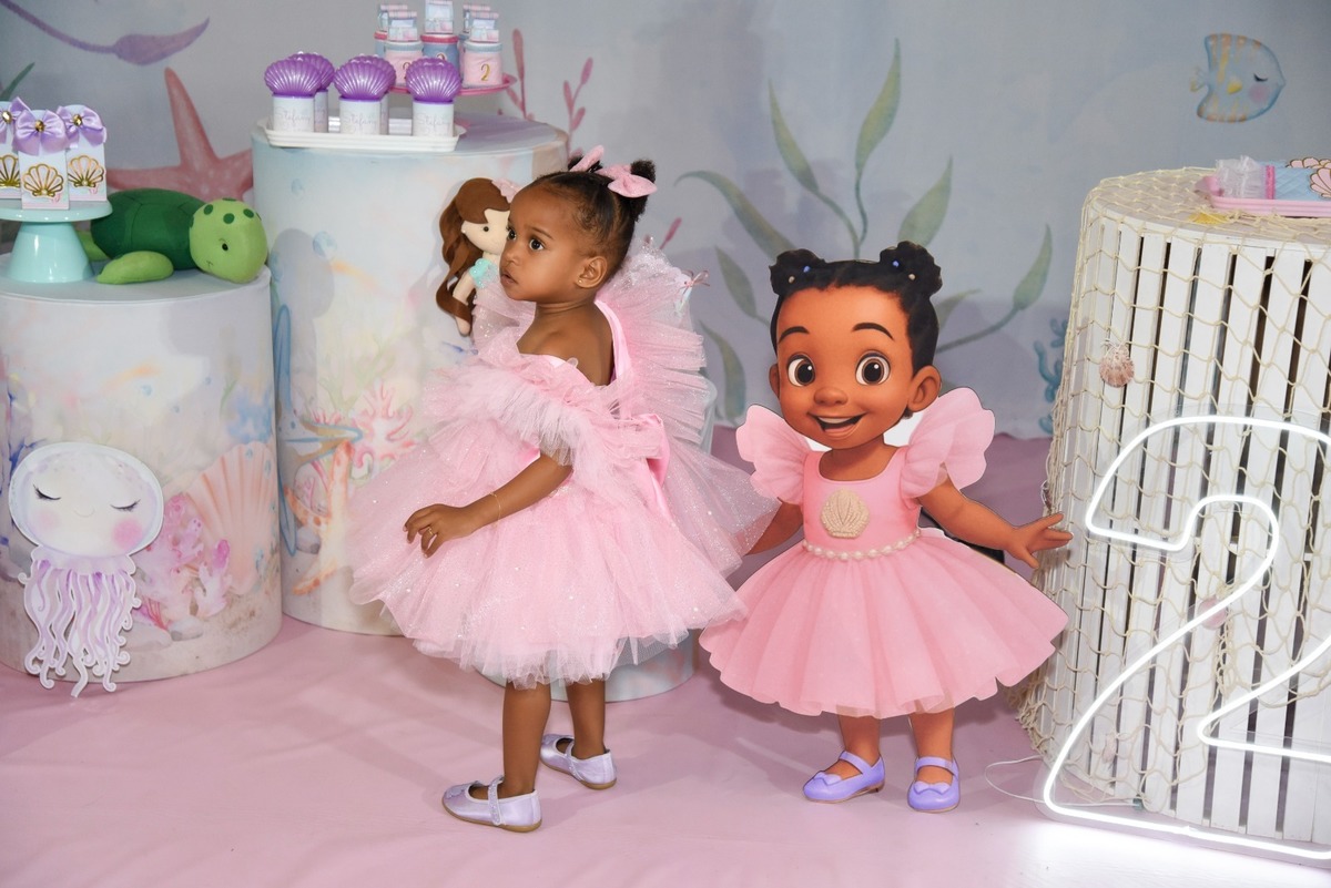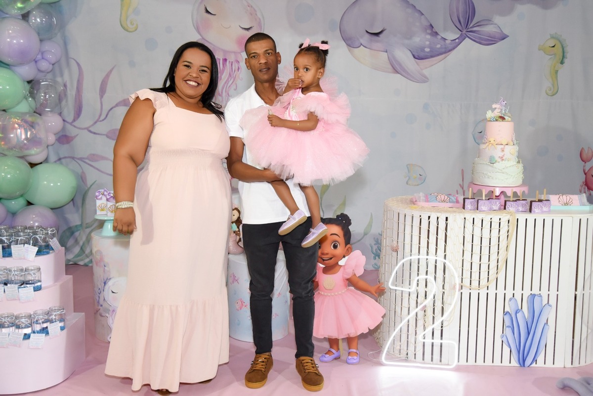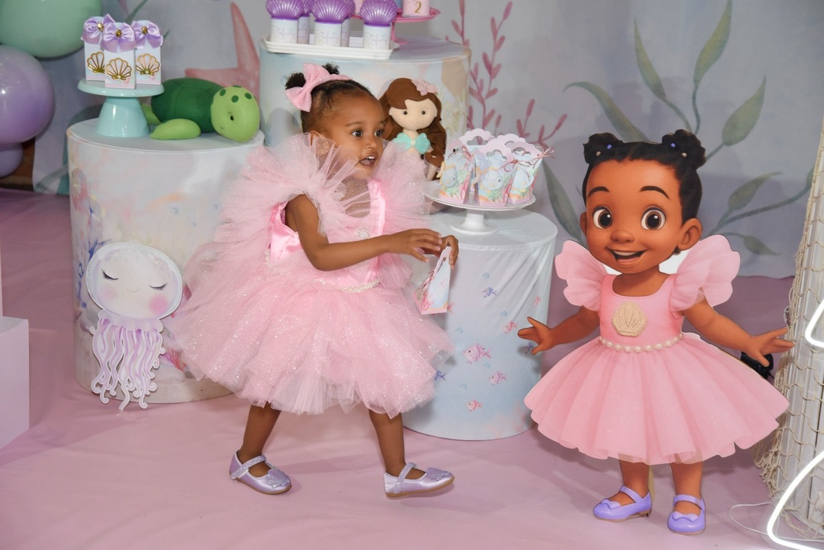 Estefany comemorando seus 2 aninhos em um mundo encantado de sereia, com uma decoração cheia de cores e magia preparada com todo carinho pela mamãe.