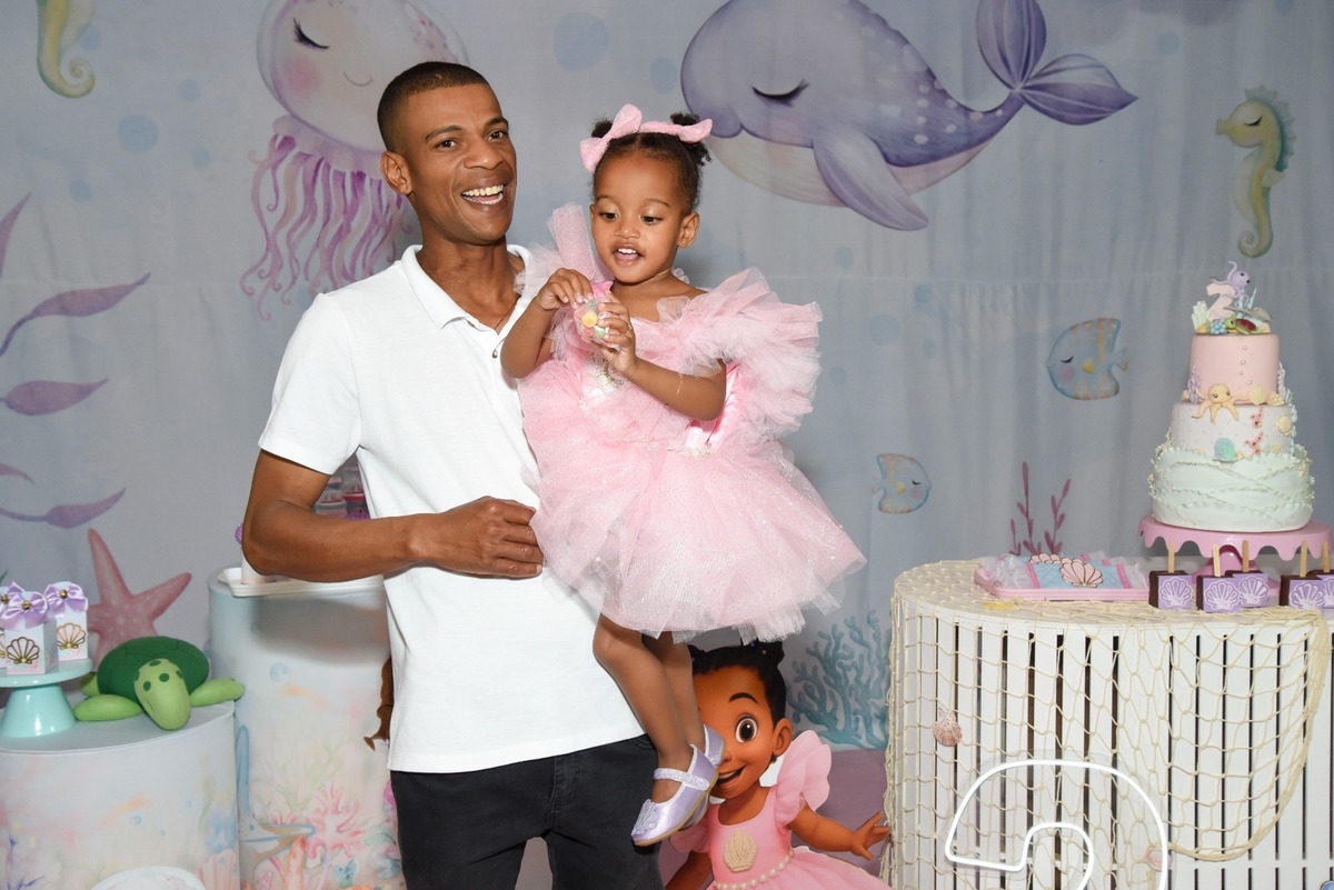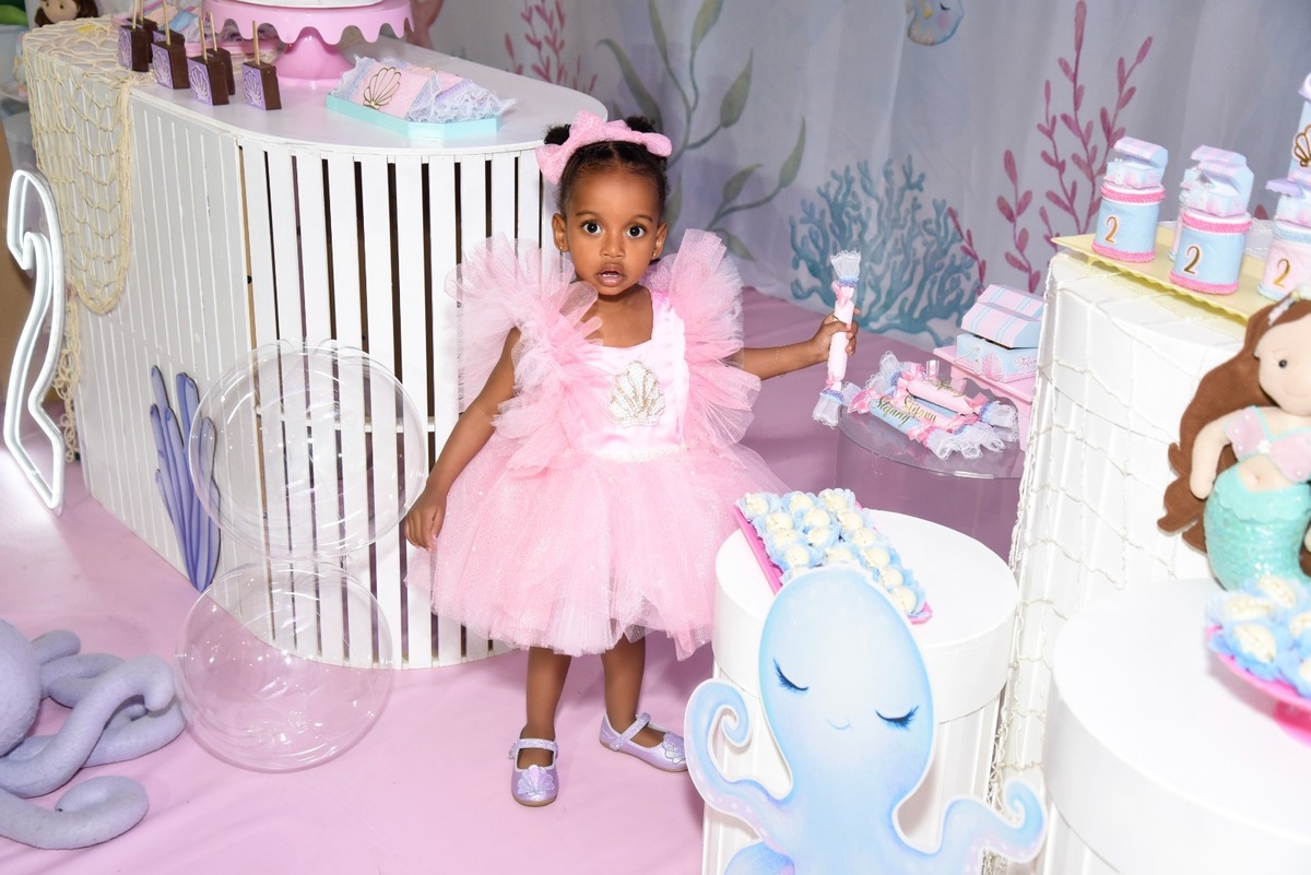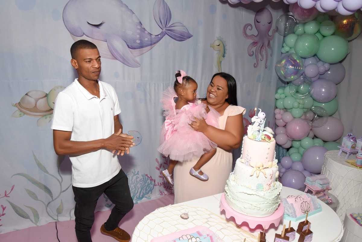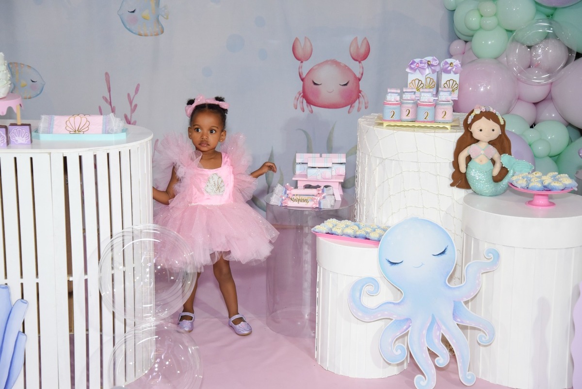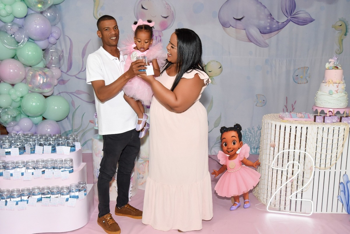 Estefany comemorando seus 2 aninhos em um mundo encantado de sereia, com uma decoração cheia de cores e magia preparada com todo carinho pela mamãe.
