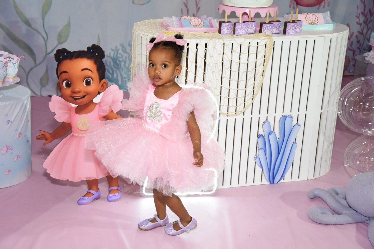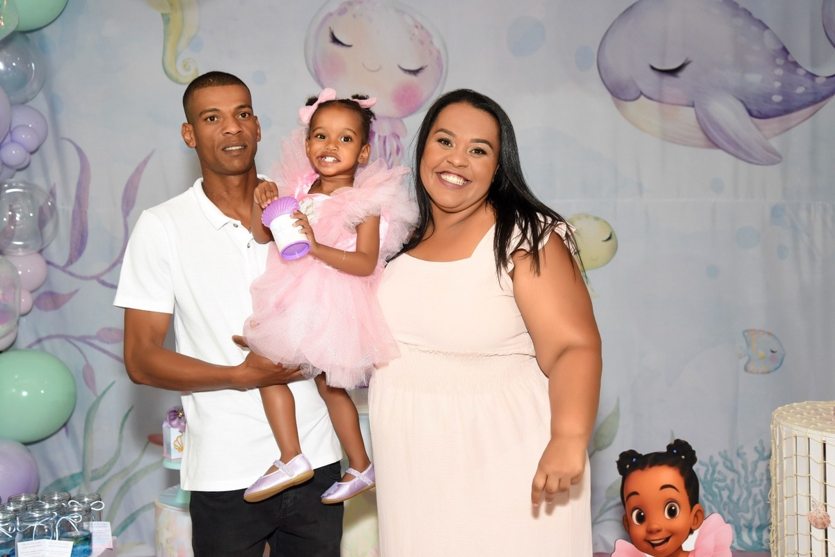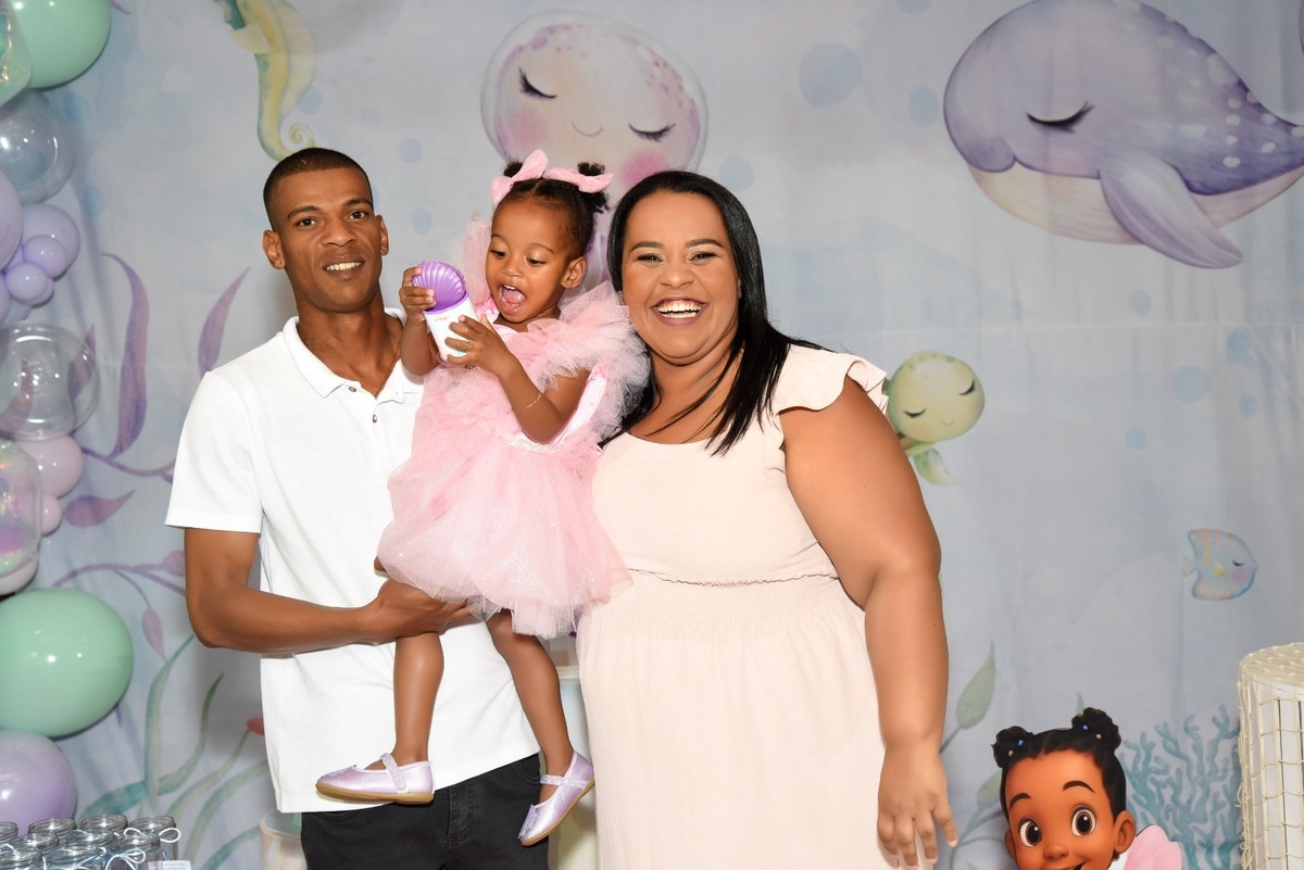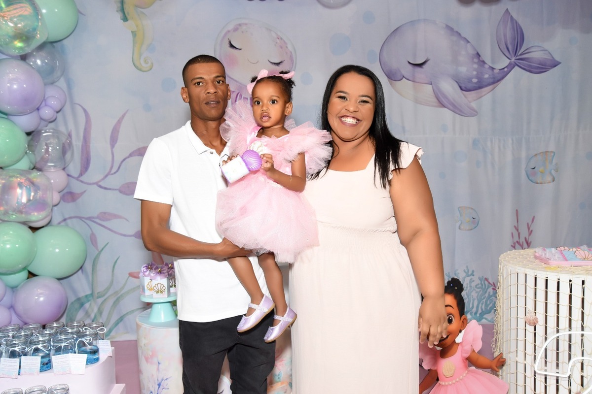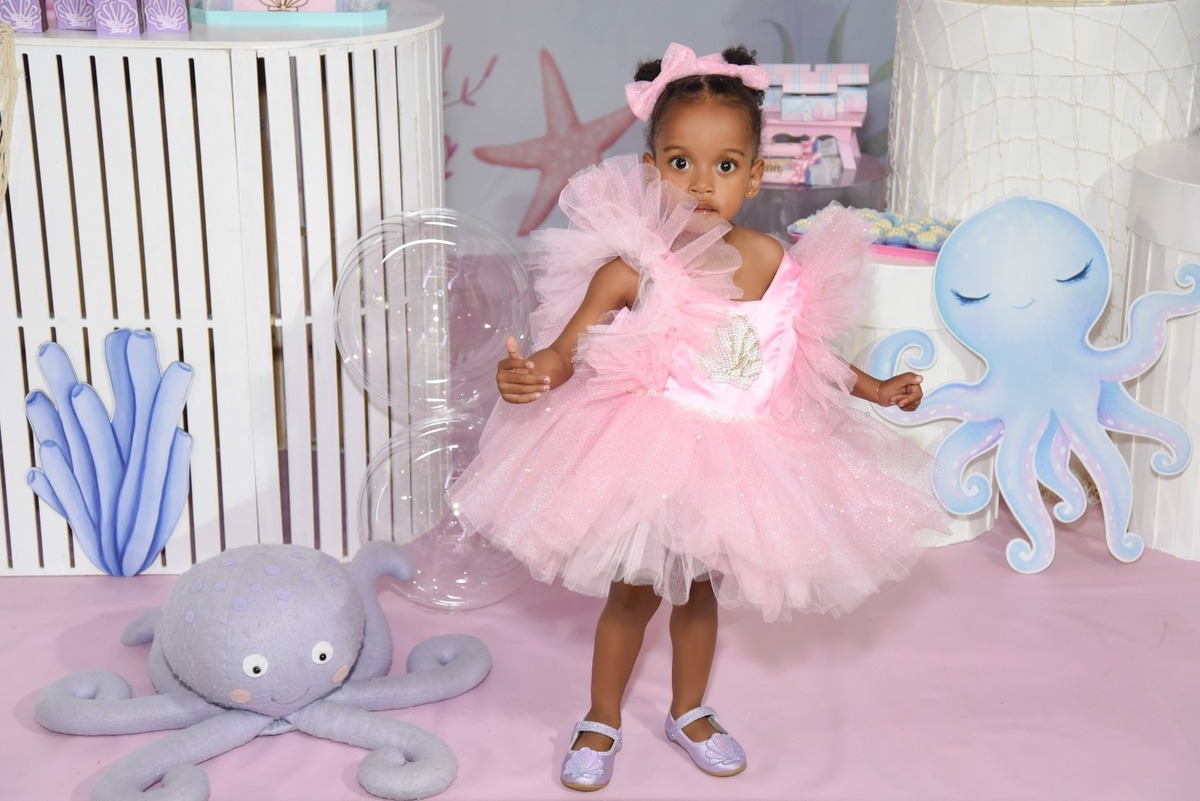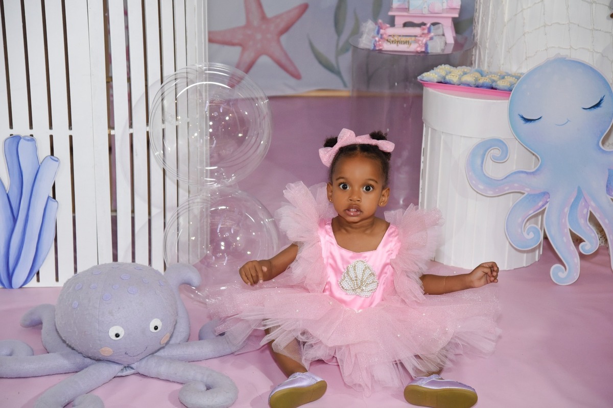 Estefany comemorando seus 2 aninhos em um mundo encantado de sereia, com uma decoração cheia de cores e magia preparada com todo carinho pela mamãe.