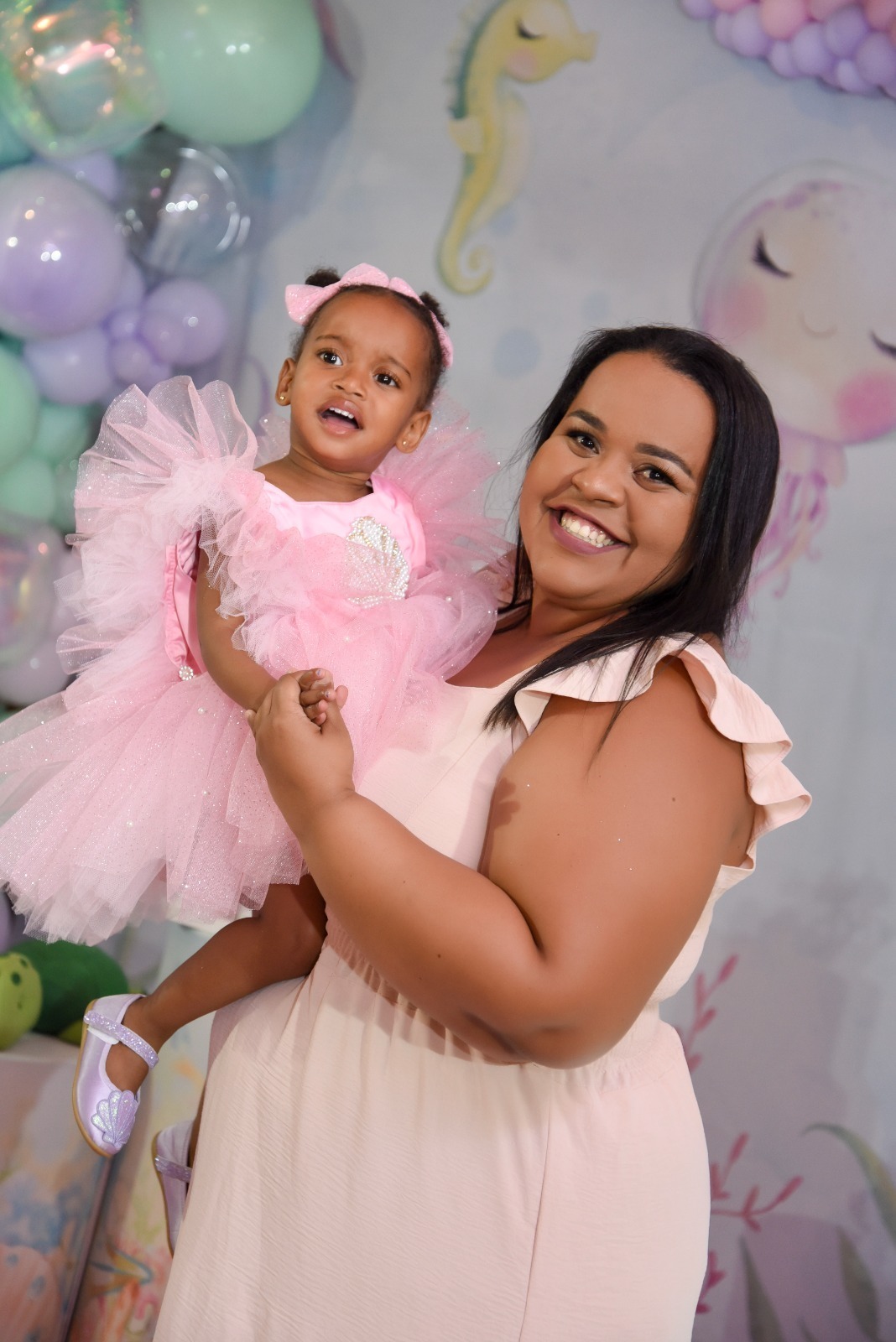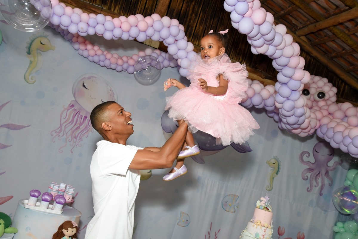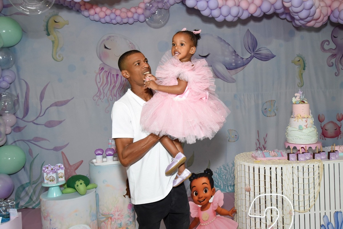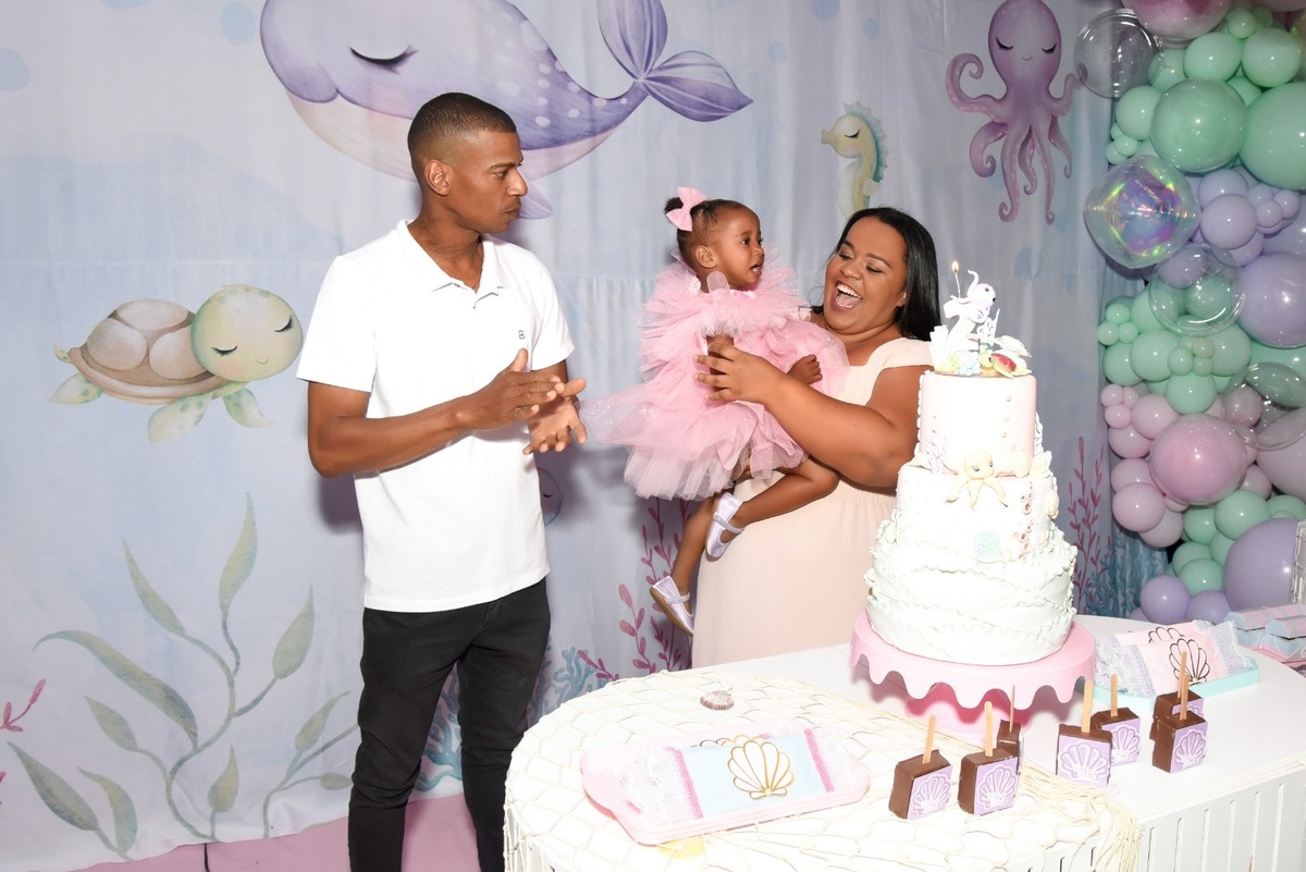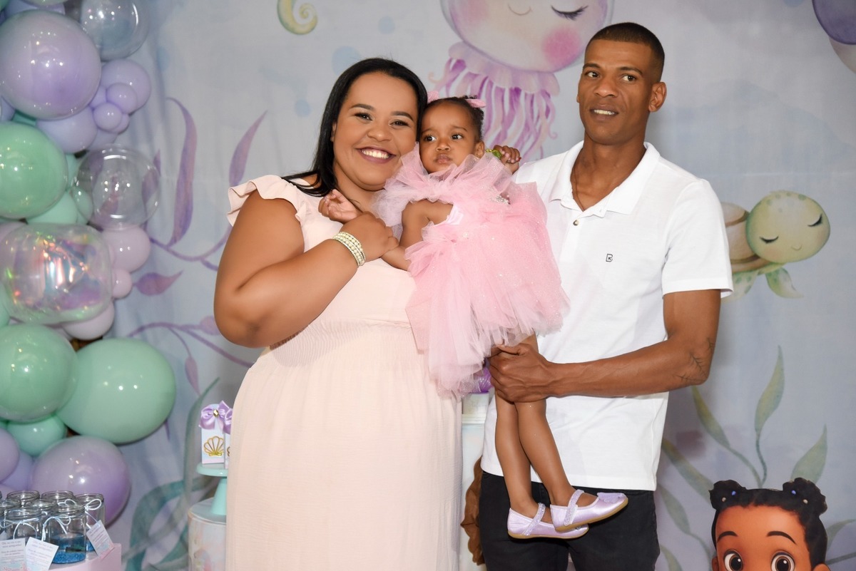 Estefany comemorando seus 2 aninhos em um mundo encantado de sereia, com uma decoração cheia de cores e magia preparada com todo carinho pela mamãe.