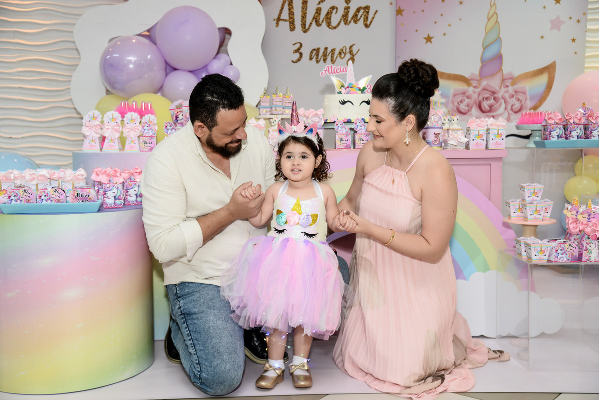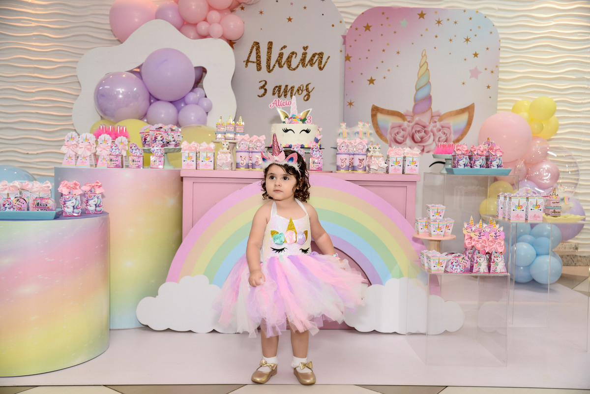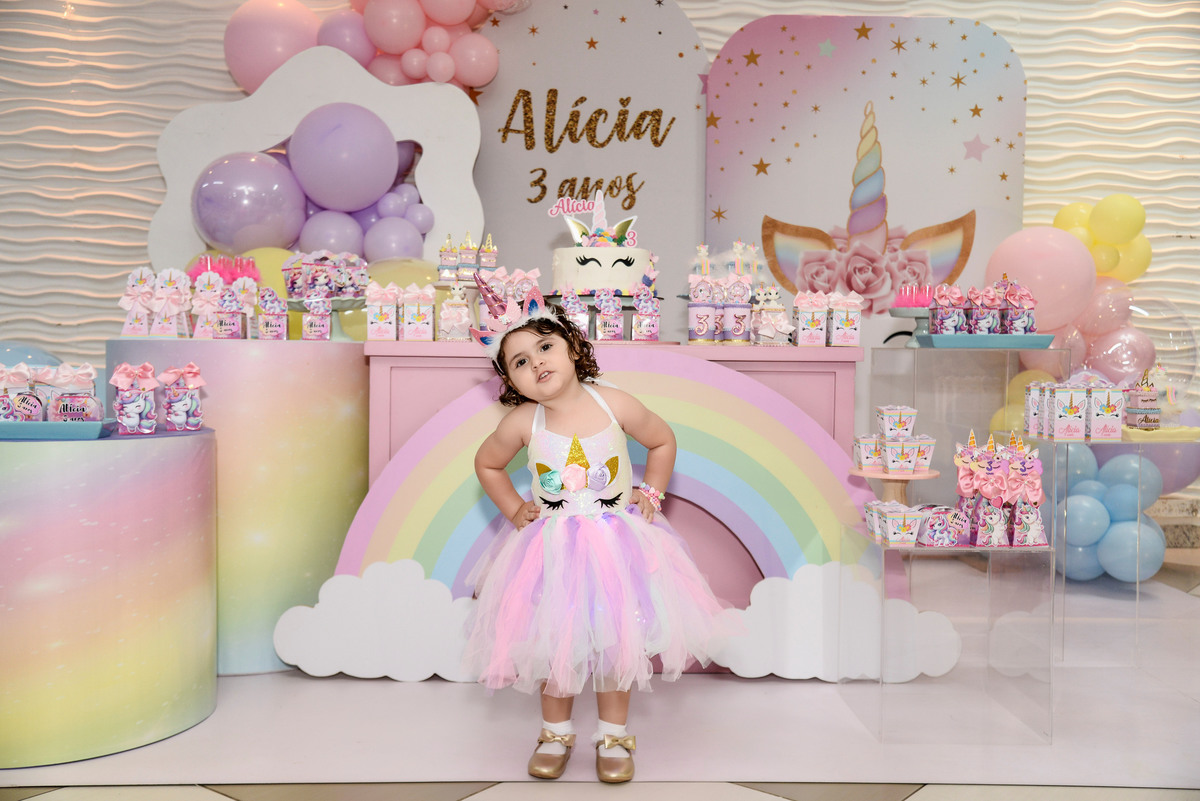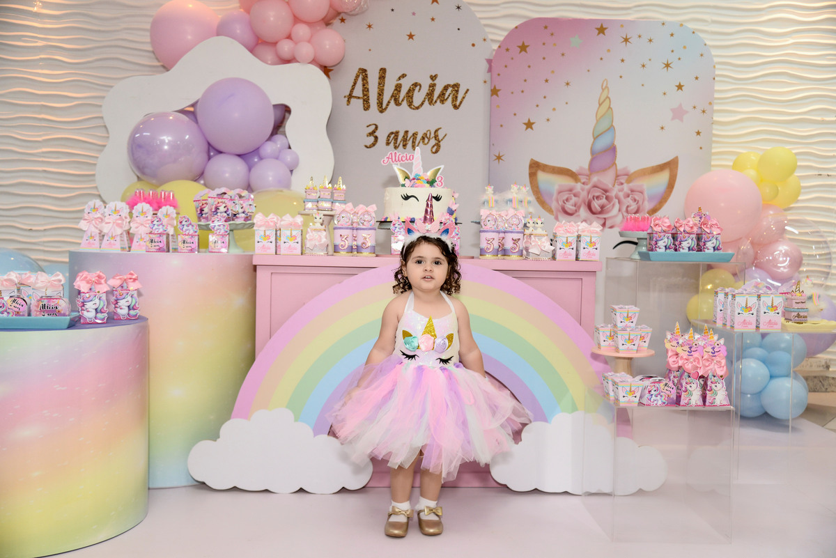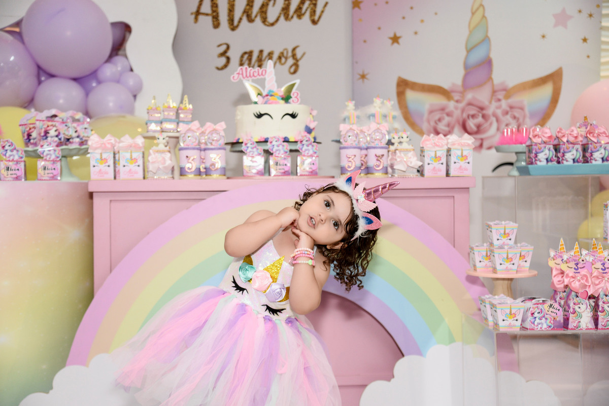 Alícia, 3 aninhos de magia, cores e encanto em um universo de unicórnios!