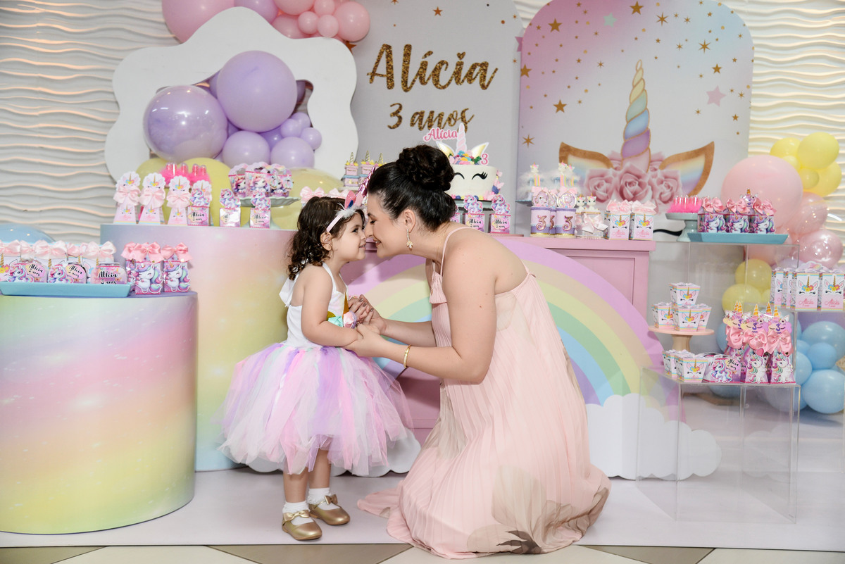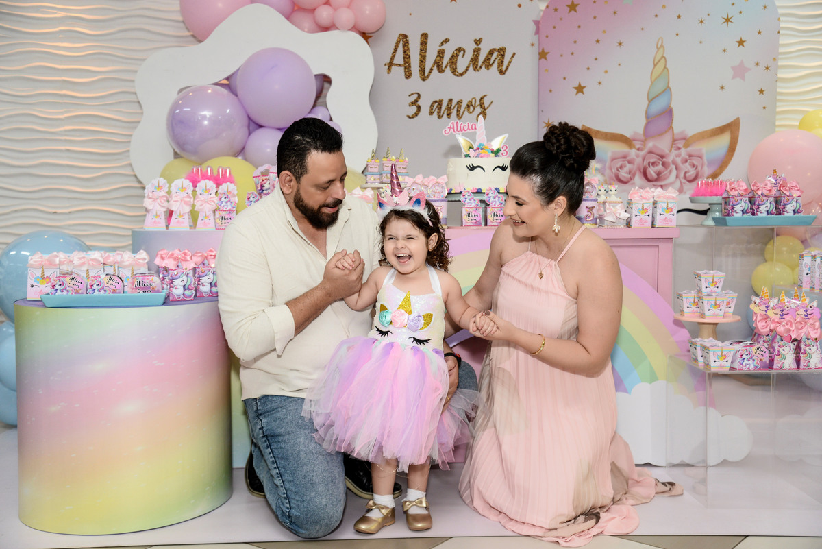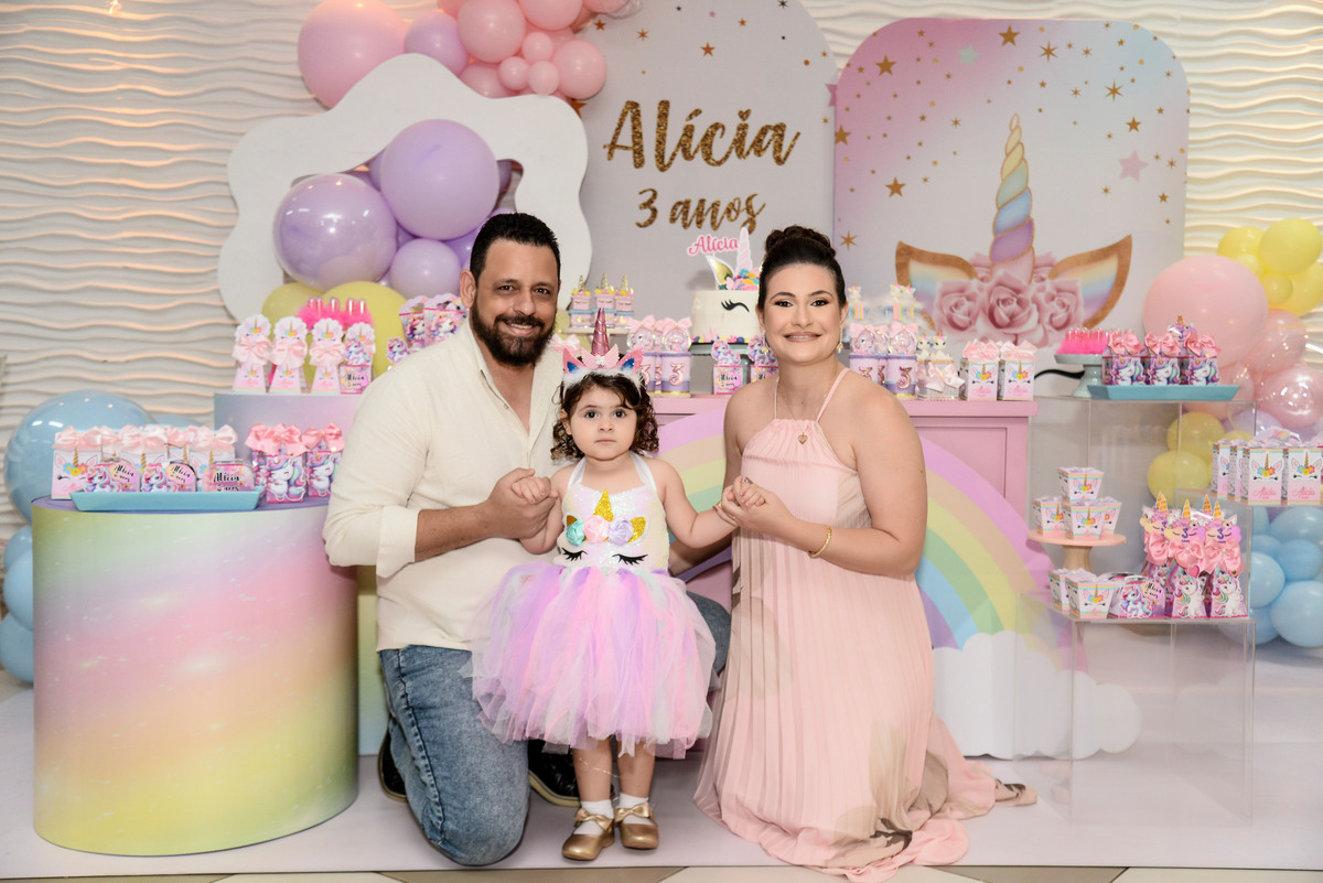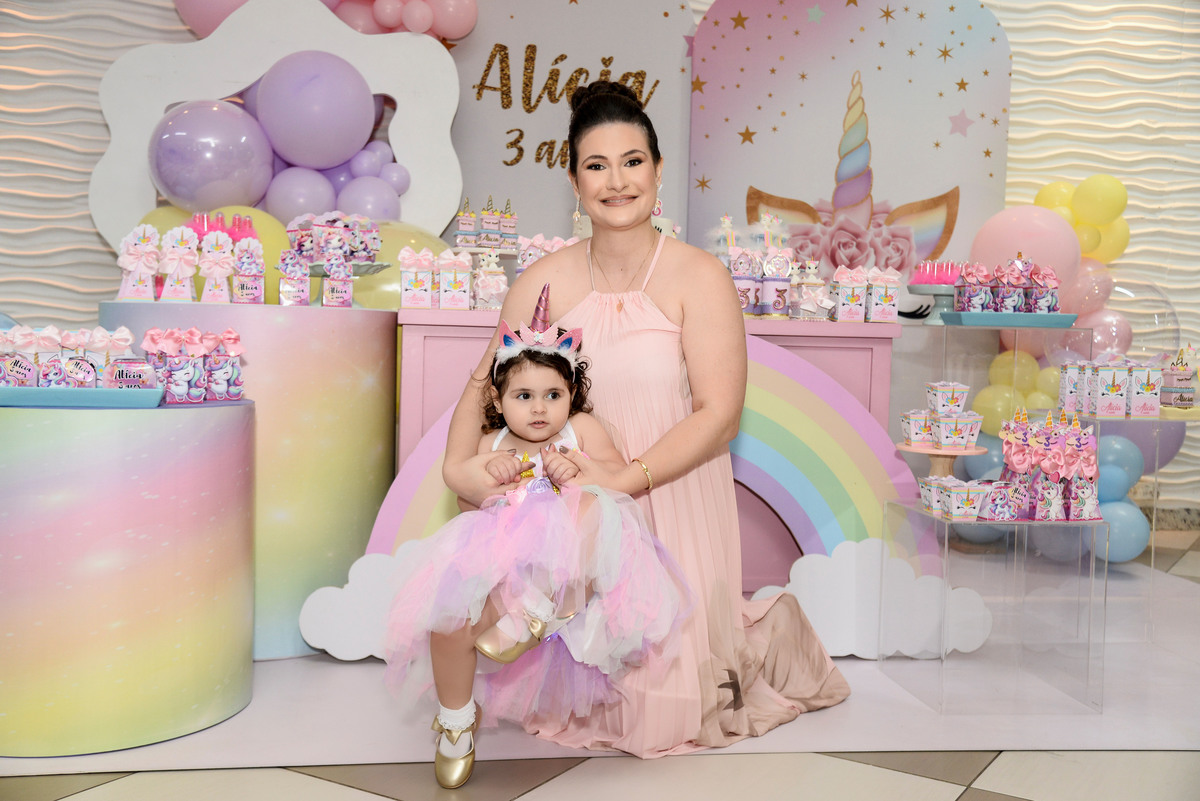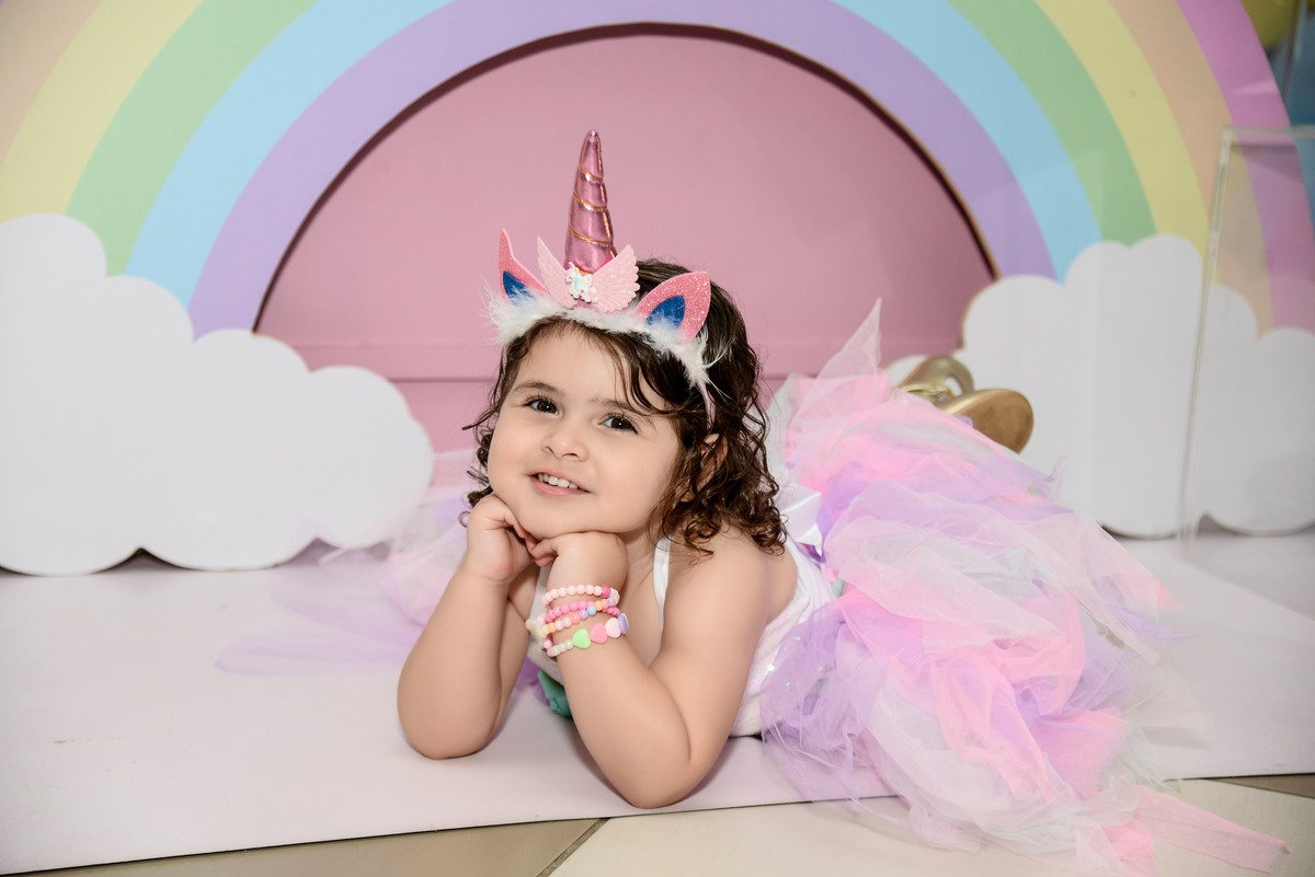 Alícia, 3 aninhos de magia, cores e encanto em um universo de unicórnios!