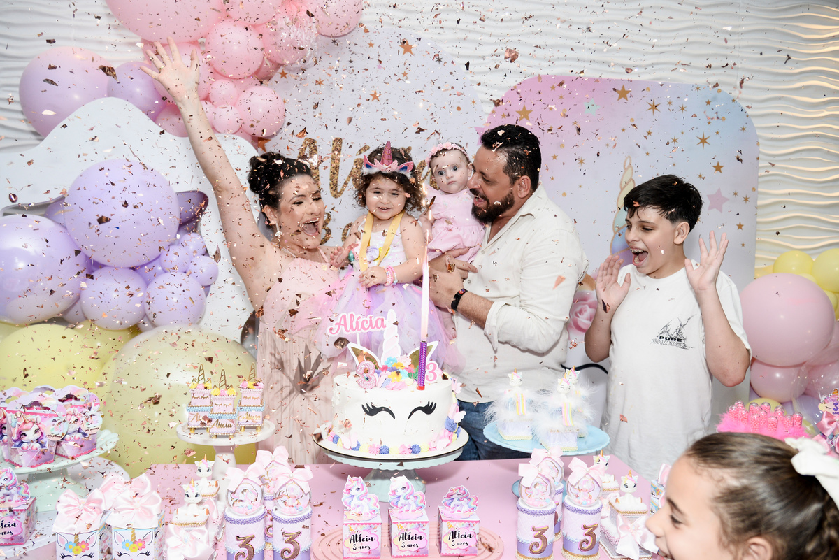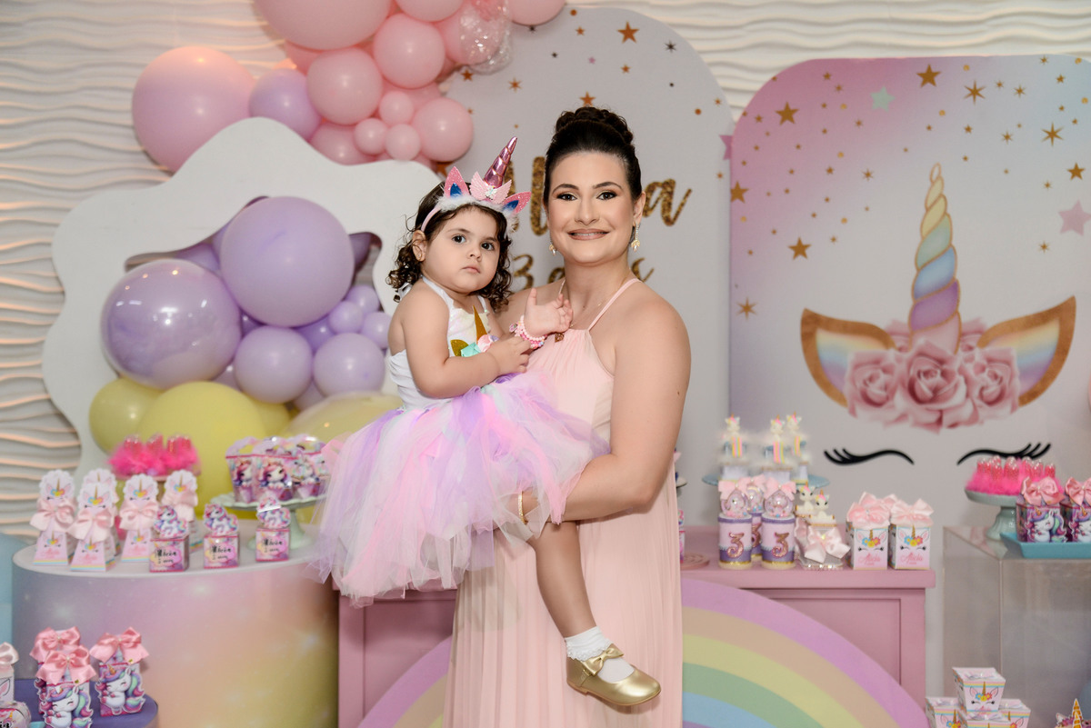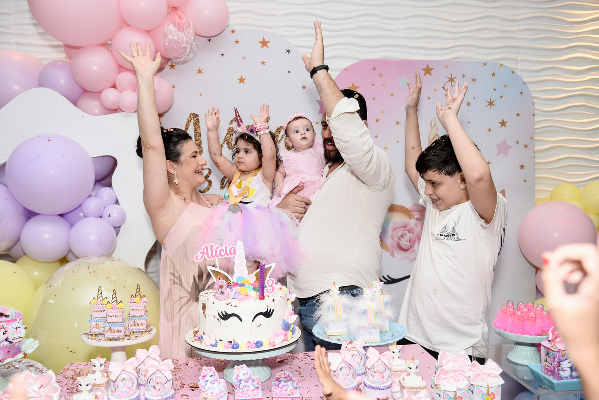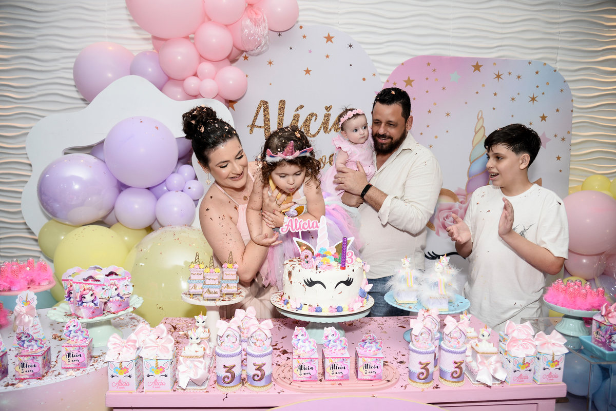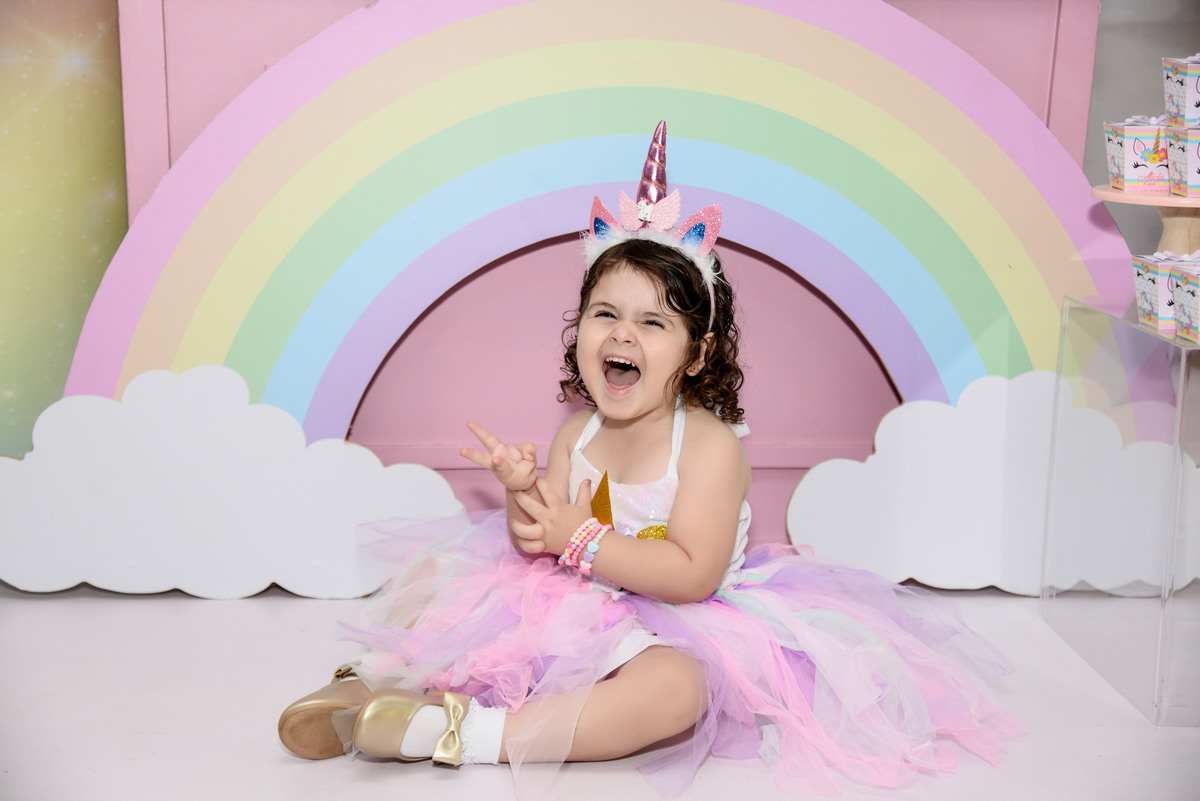 Alícia, 3 aninhos de magia, cores e encanto em um universo de unicórnios!