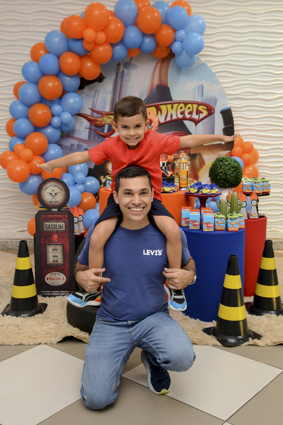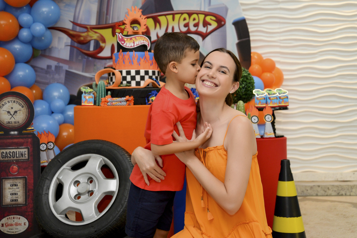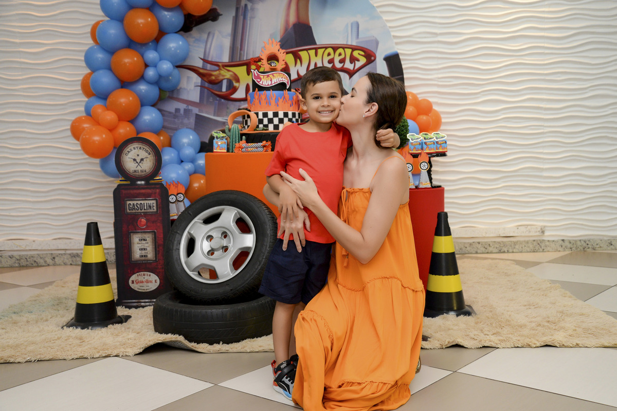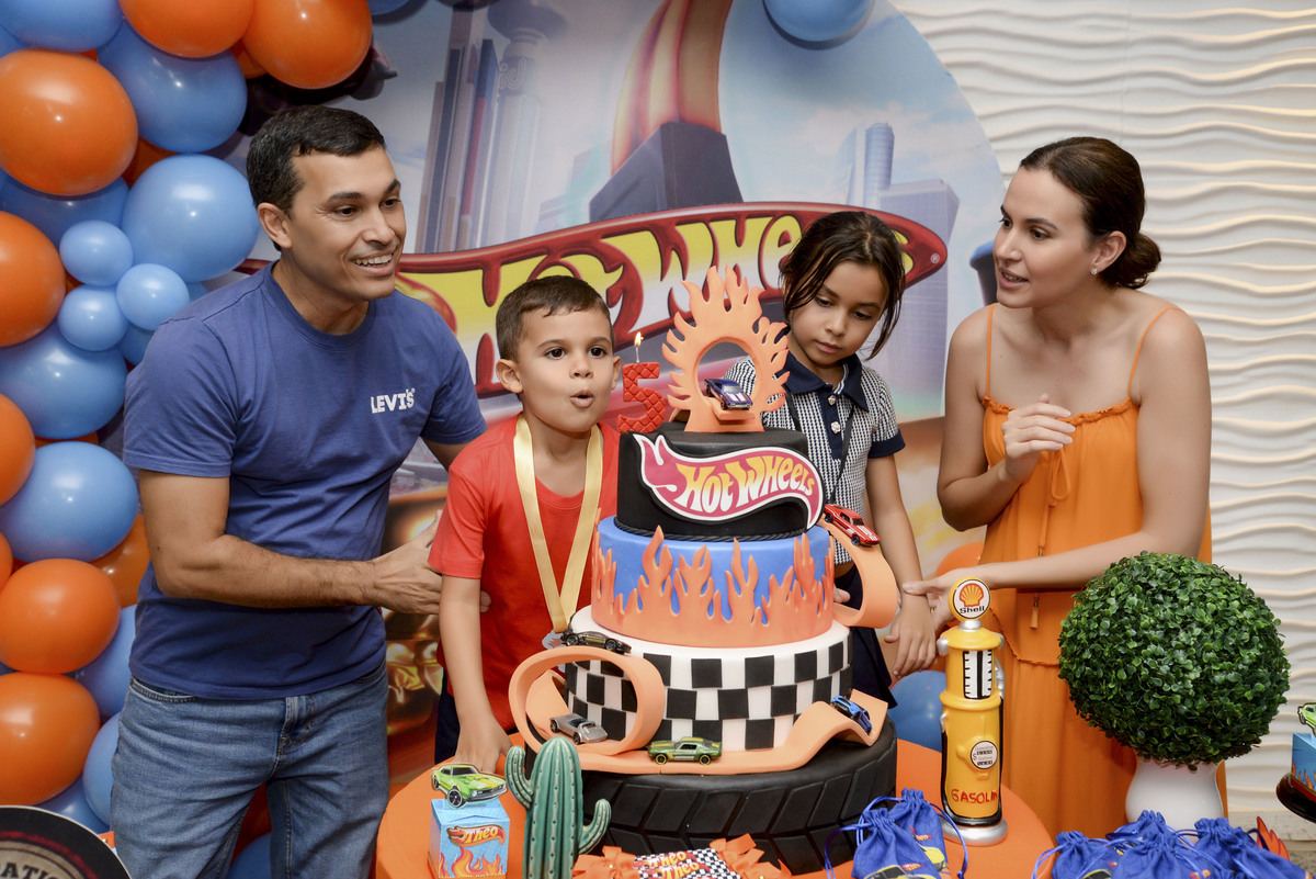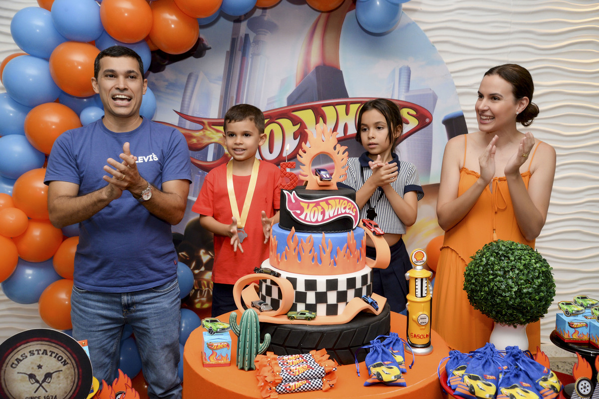 Théo celebra 5 anos em uma corrida de diversão, cores e emoção Hot Wheels.