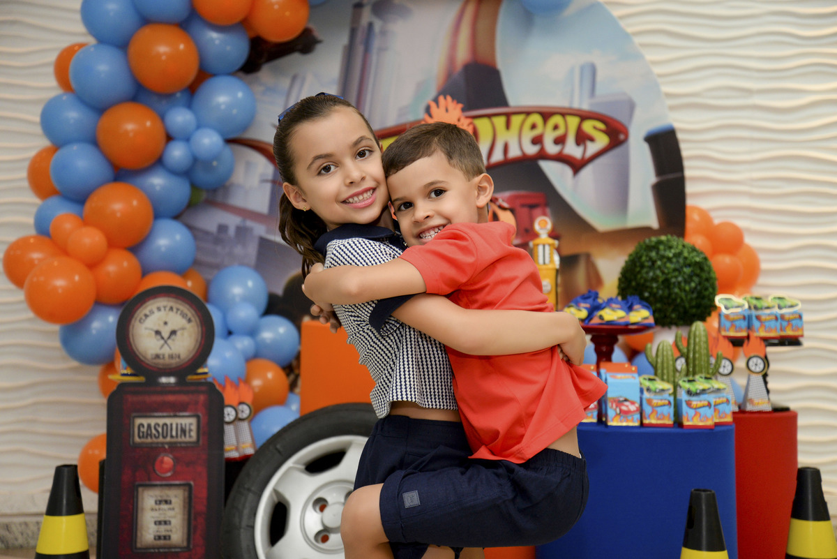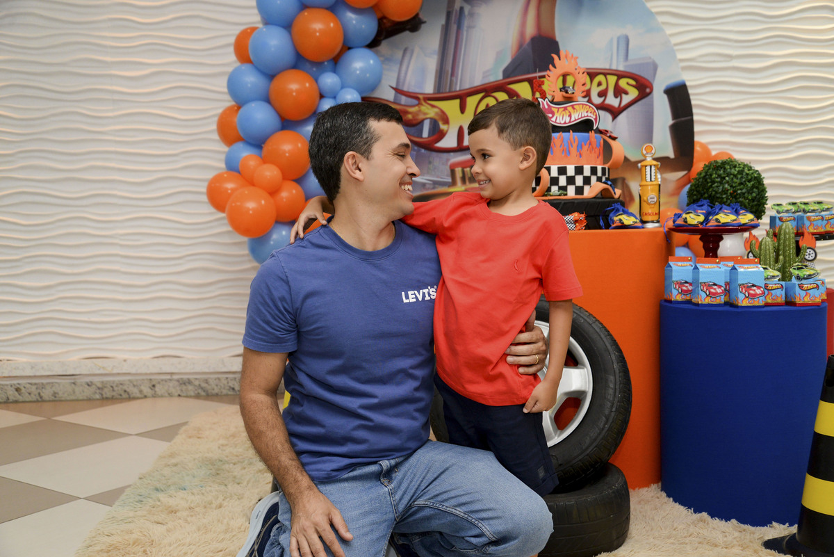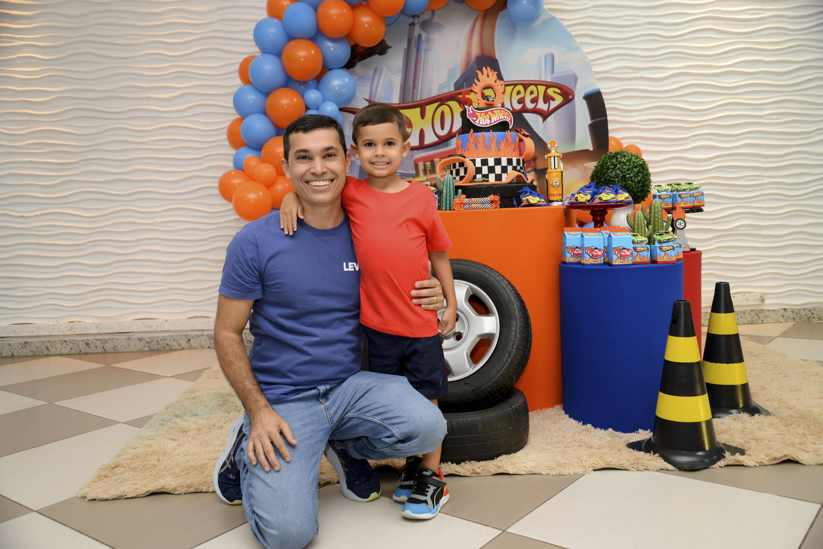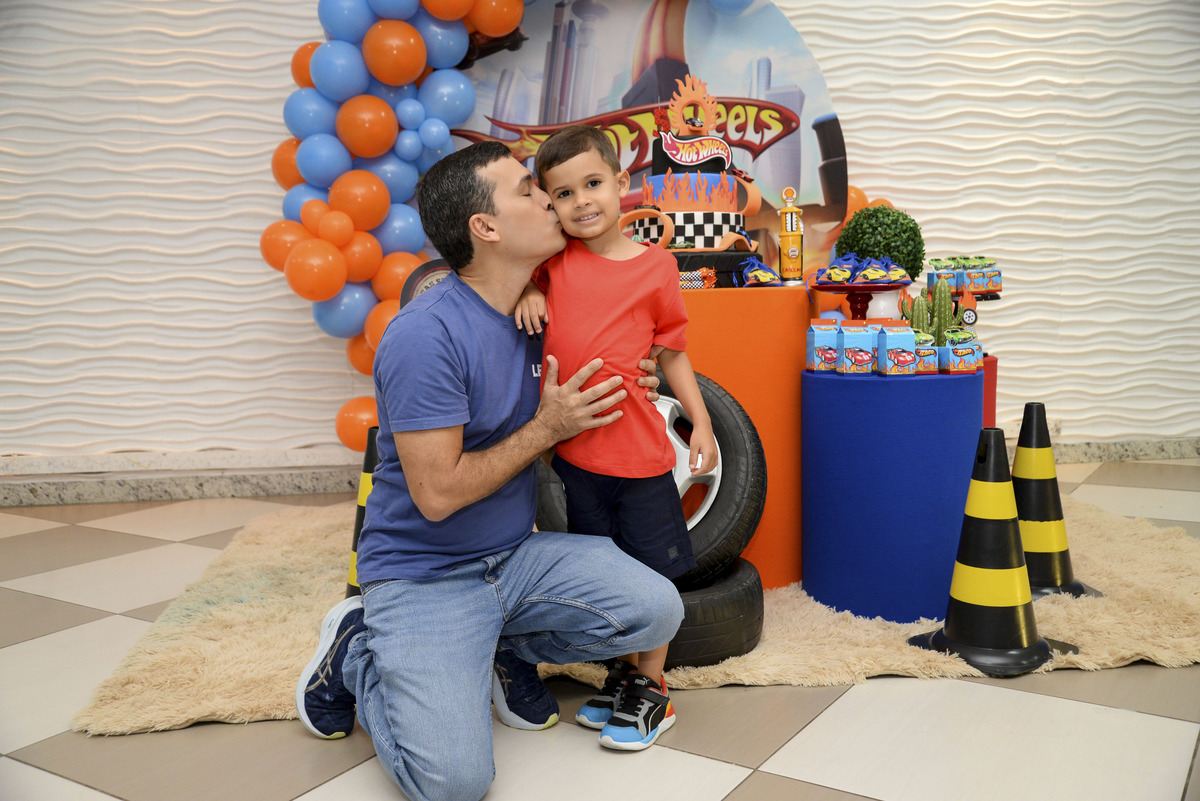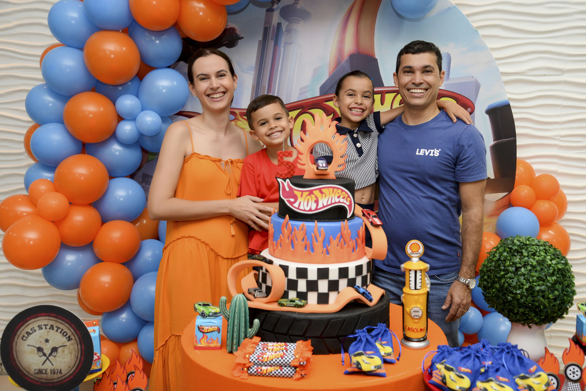 Théo celebra 5 anos em uma corrida de diversão, cores e emoção Hot Wheels.
