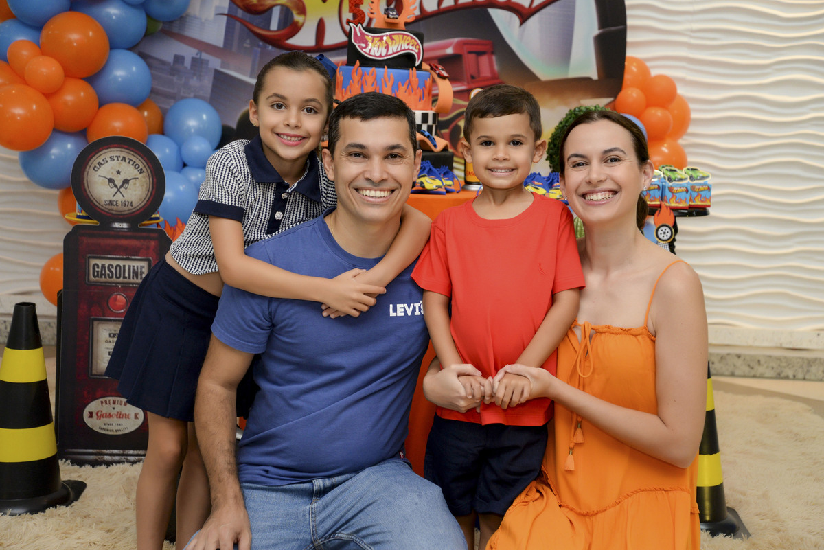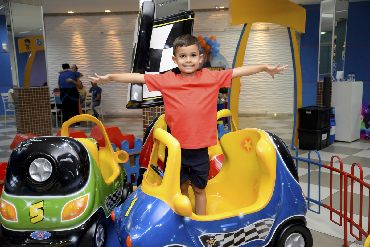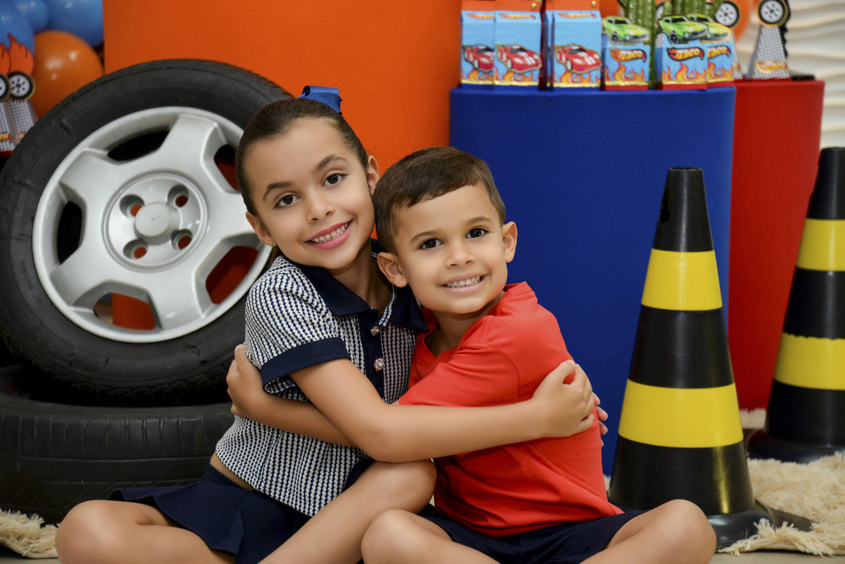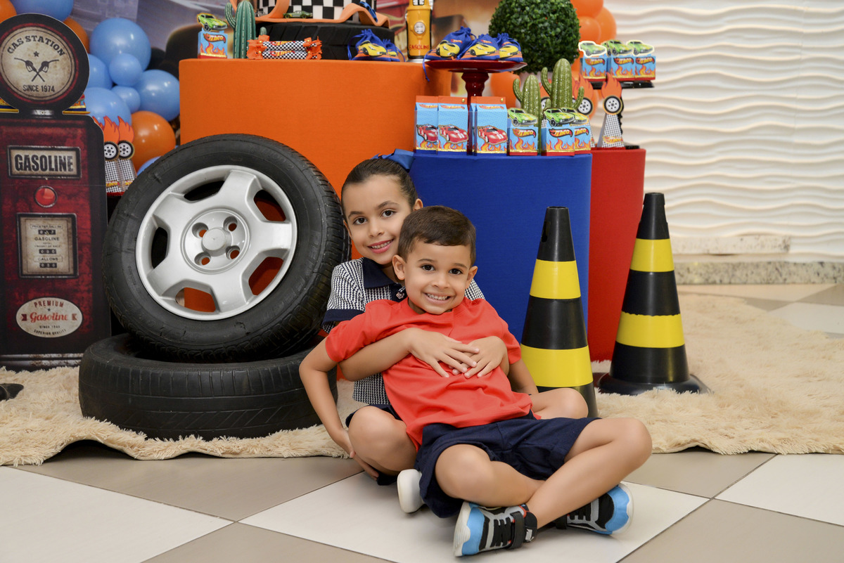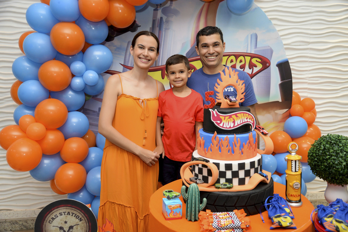 Théo celebra 5 anos em uma corrida de diversão, cores e emoção Hot Wheels.