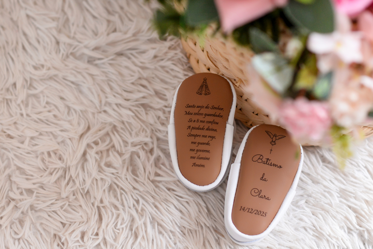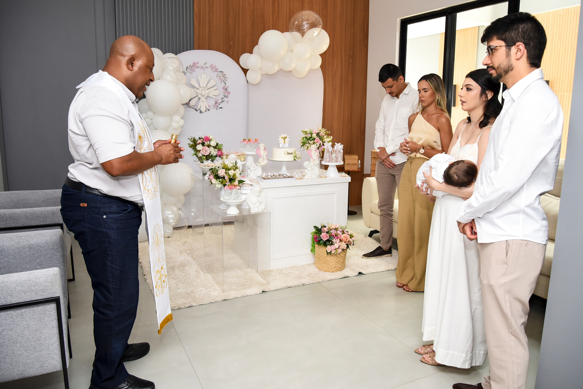 Batismo de Clara: um momento de fé, delicadeza e significado. Uma celebração marcada por luz, simbolismo e bênçãos, registrada com simplicidade e harmonia!