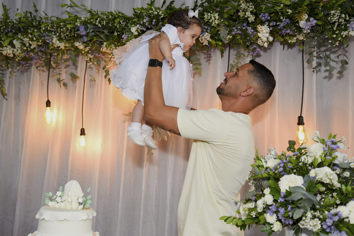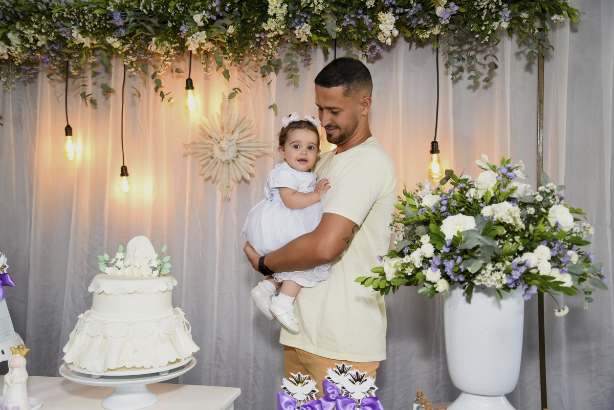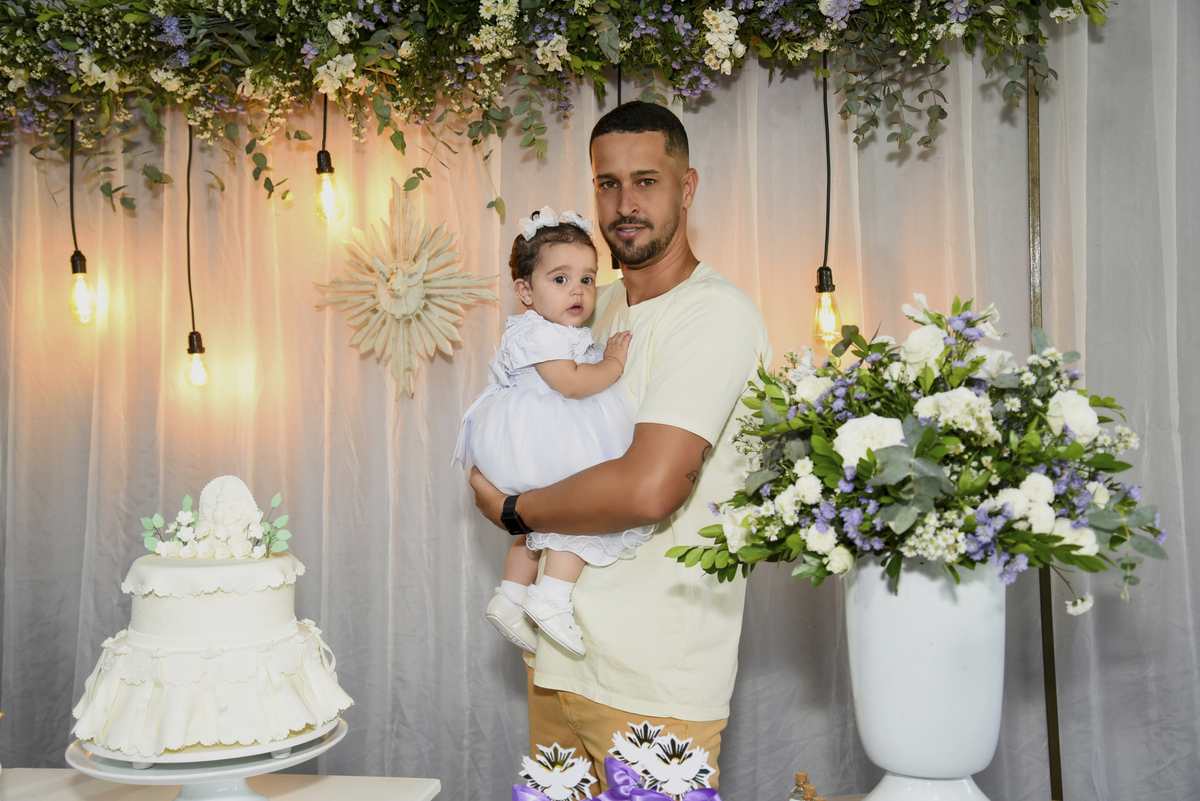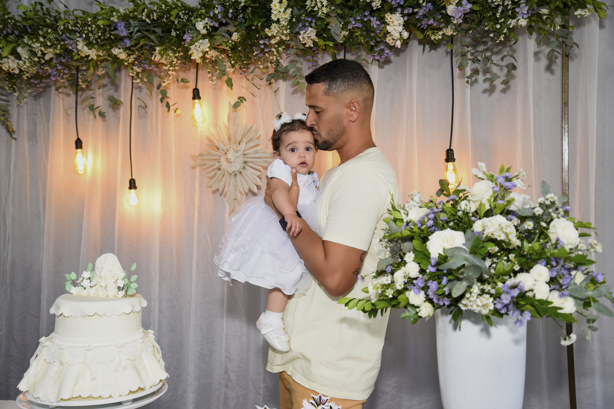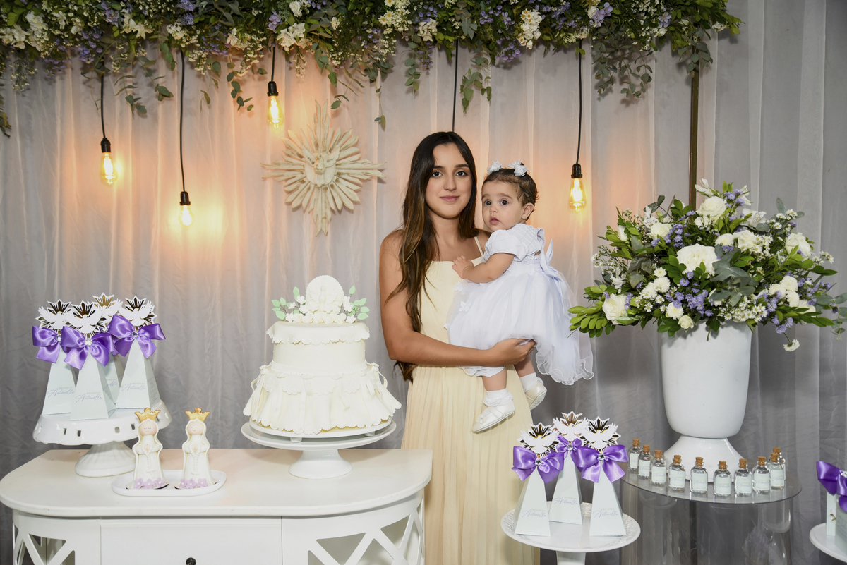 Antonella envolta em luz, pureza e significado. Um momento marcante que simboliza amor, cuidado e um caminho guiado por valores especiais.
